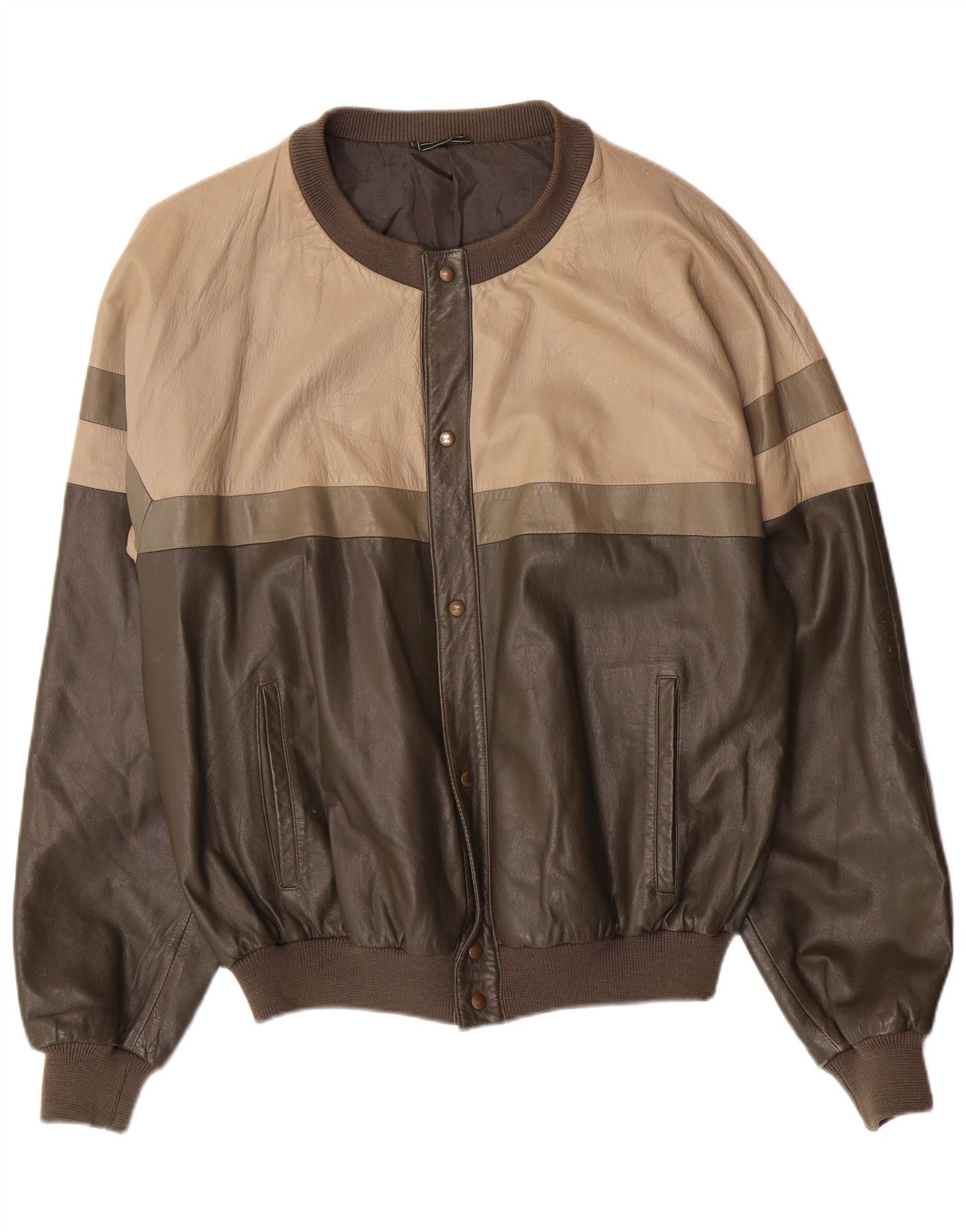 Kurtka męska LAVORAZIONE ARTIGIANA IT 54 2XL Skóra khaki z blokami kolorów