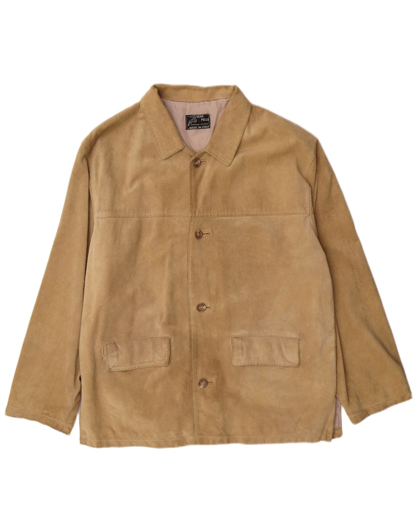 Zamszowa kurtka męska LAVORAZIONE ARTIGIANA UK 38 w kolorze średniego beżu