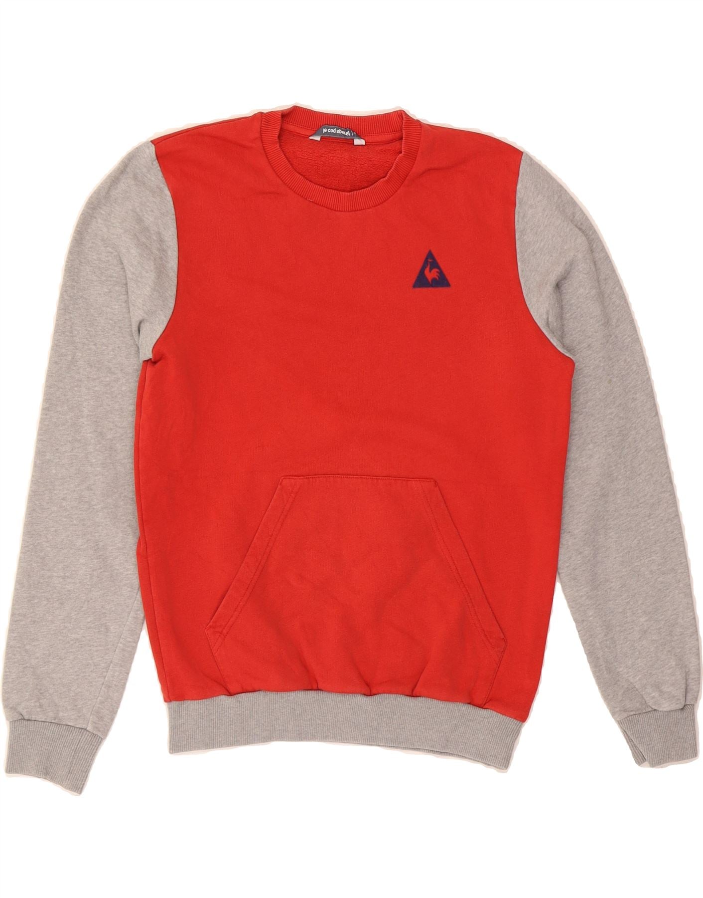 LE COQ SPORTIF Mens Sweatshirt Jumper Small Red Colourblock Cotton