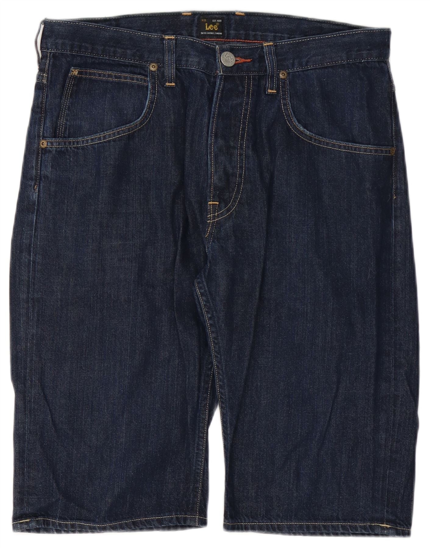 Męskie krótkie spodenki jeansowe Lee z 5 kieszeniami W32 Średni granatowy, bawełniany