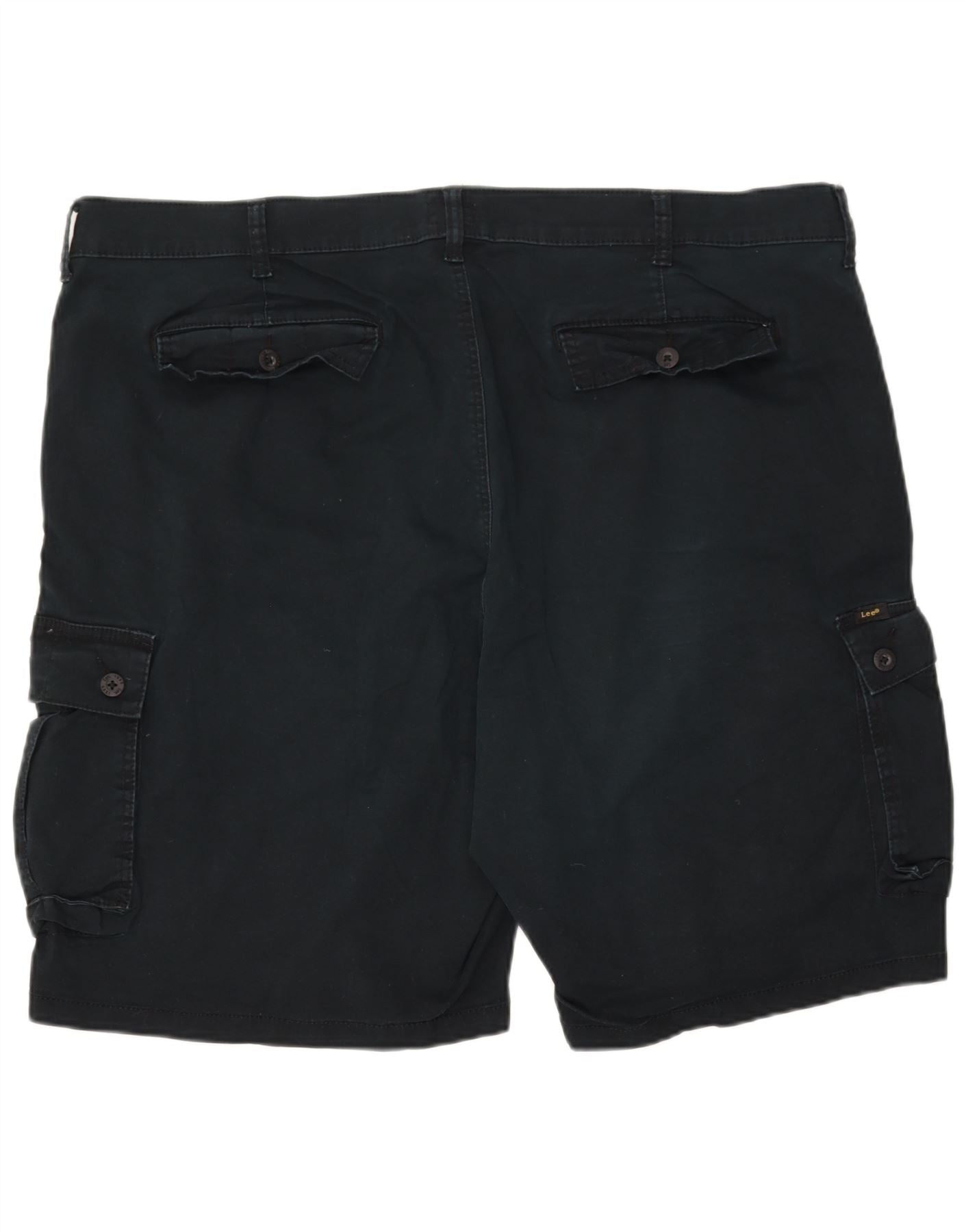 - AI Description: This Lee men's cargo shorts are crafted from a durable black blended fabric, offering both comfort and stretch. The classic design features a button closure and a relaxed fit, ensuring ease of movement. Multiple practical pockets enhance functionality and provide ample storage. The sturdy cotton blend material ensures lasting wear and a comfortable feel, perfect for everyday casual wear.