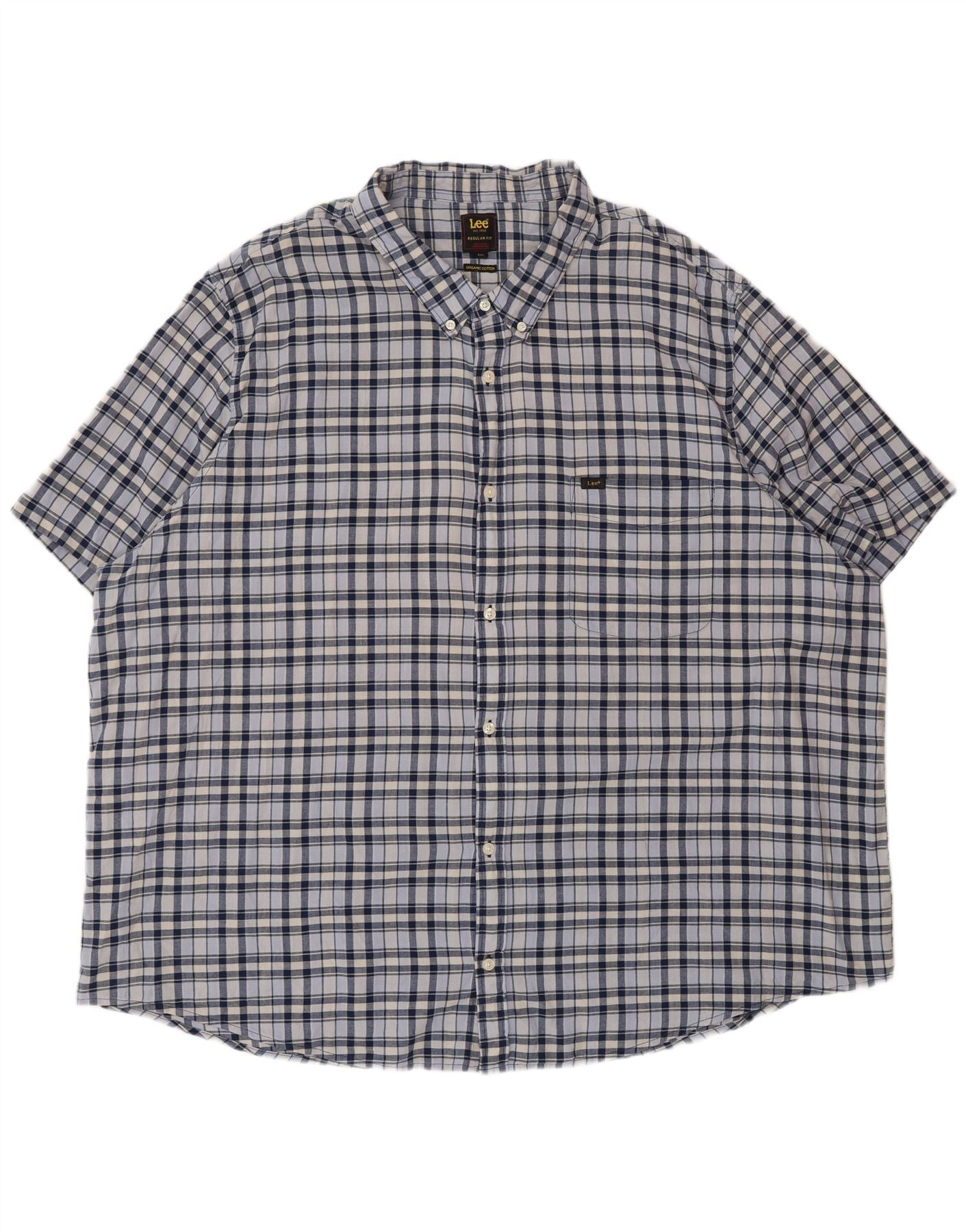 Męska koszula z krótkim rękawem Lee o regularnym kroju, 5XL, niebieska, bawełniana w kratkę