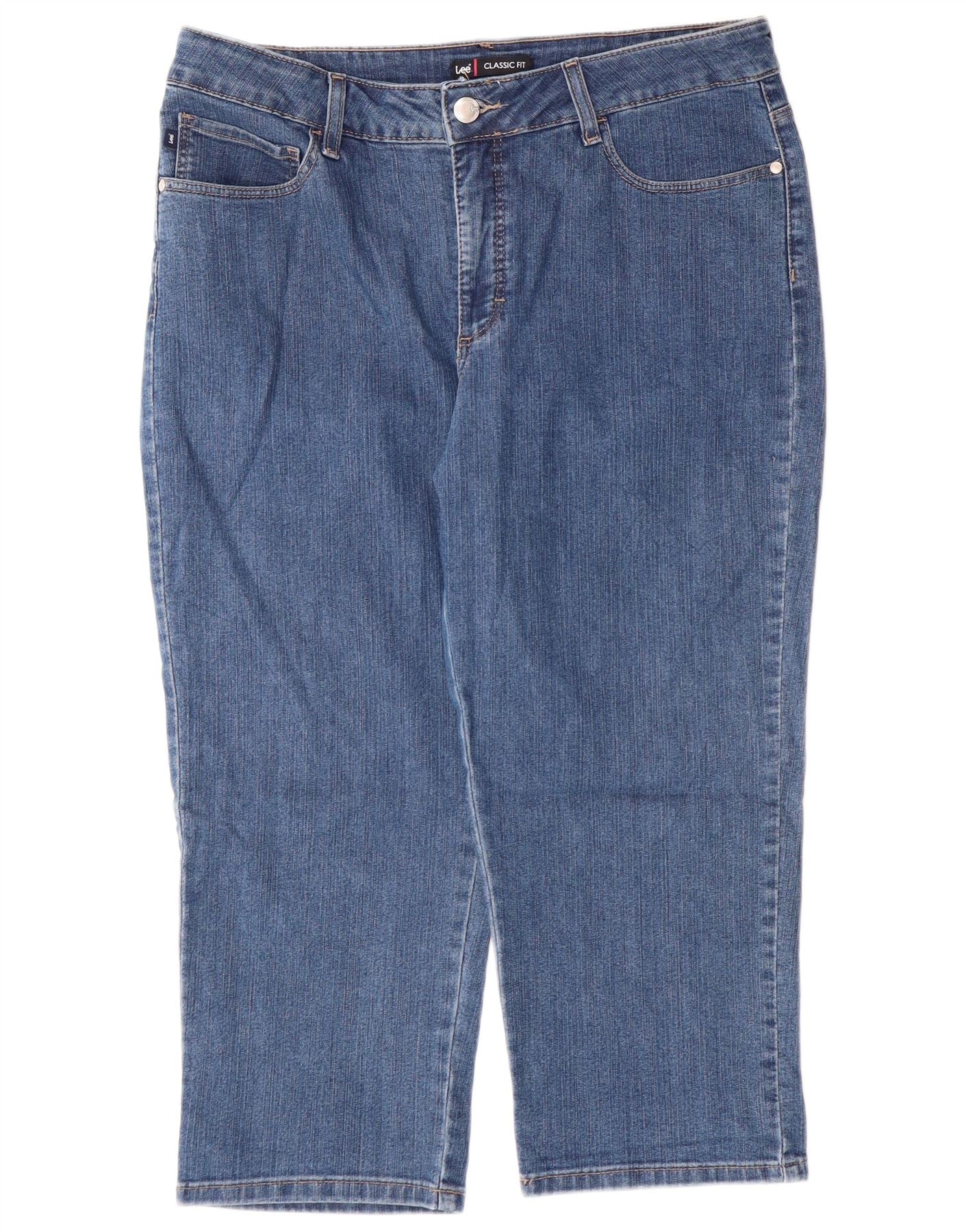 Damskie jeansy Capri LEE o klasycznym kroju US 16 2XL W34 L22 Niebieskie bawełniane