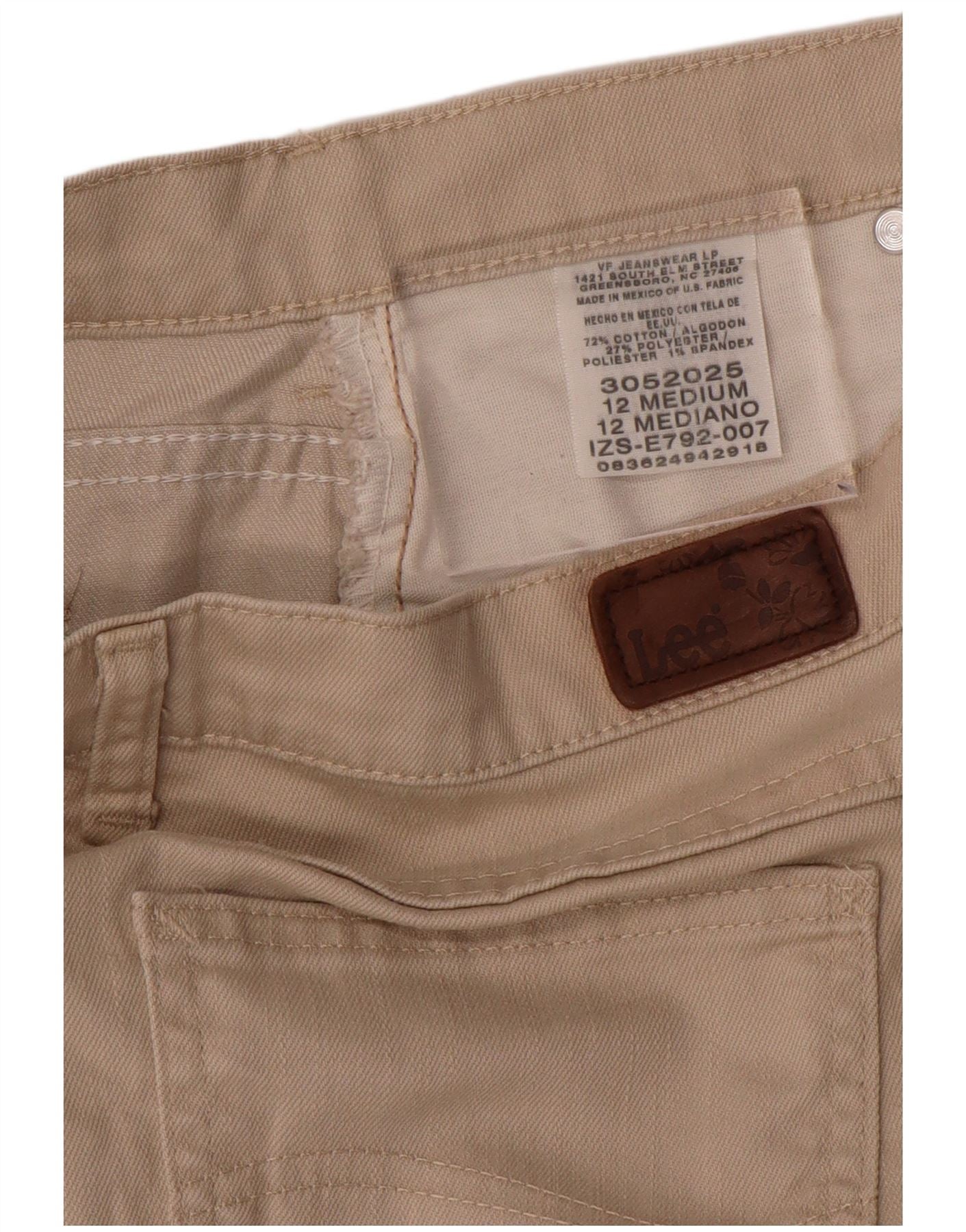 LEE Damskie proste spodnie codzienne z wysokim stanem US 12 Large W32 L28 Beżowe