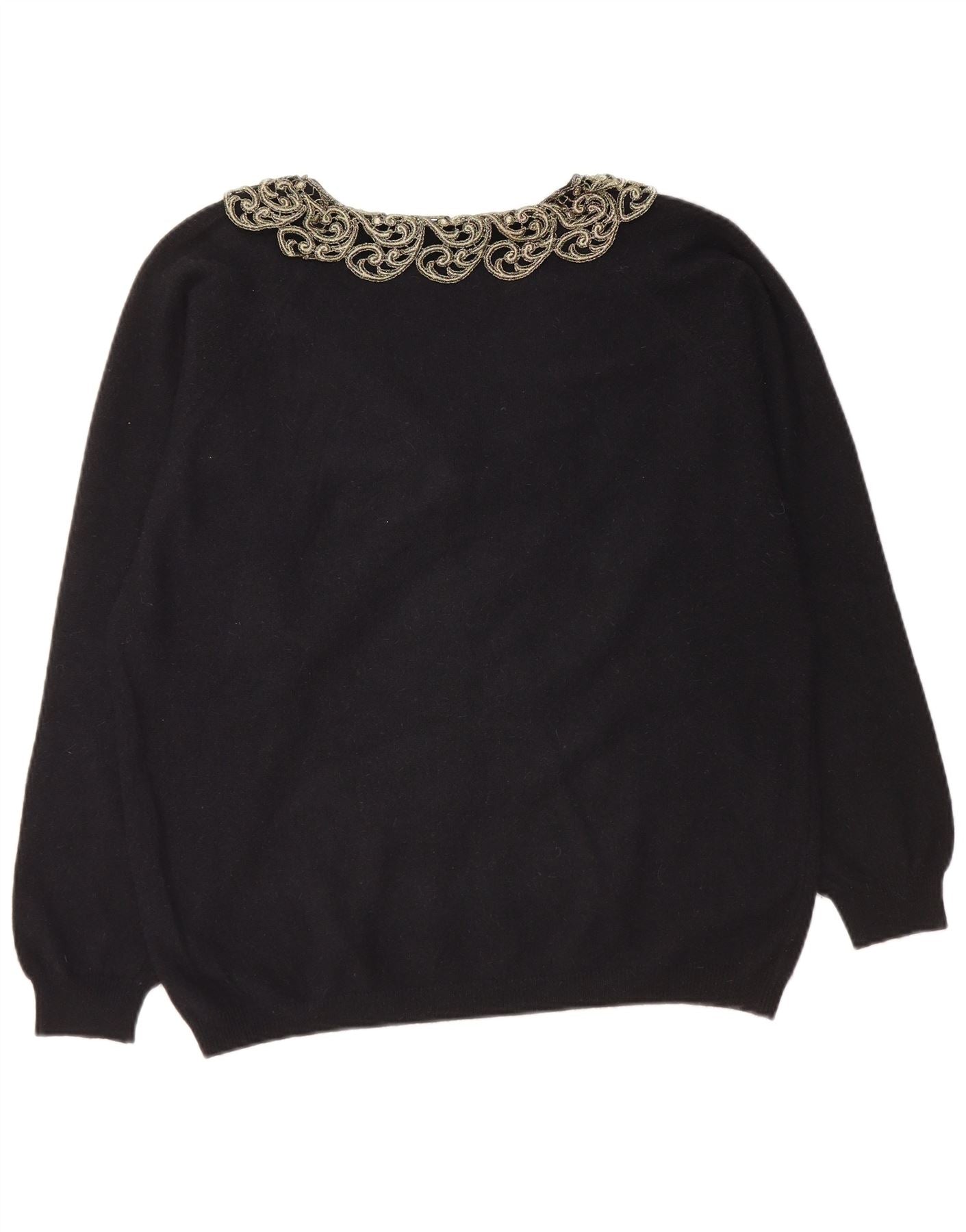 Letizia L. Sweter damski z dekoltem w kształcie litery V, UK 16, duży, czarny, wełniany paisley