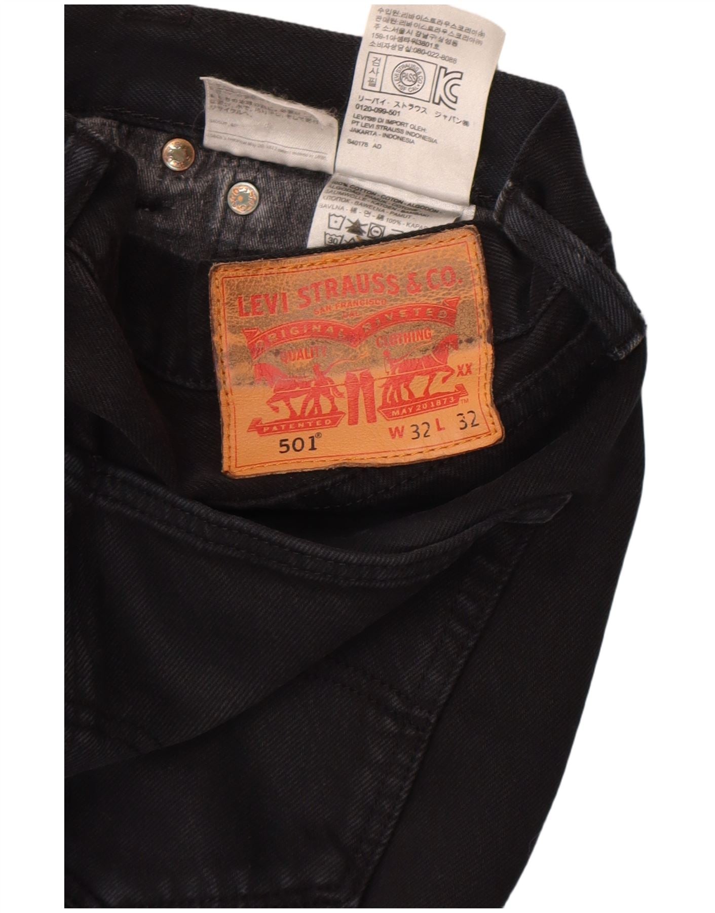 Męskie dżinsy Levi's 501 Straight W32 L32 Czarna bawełna