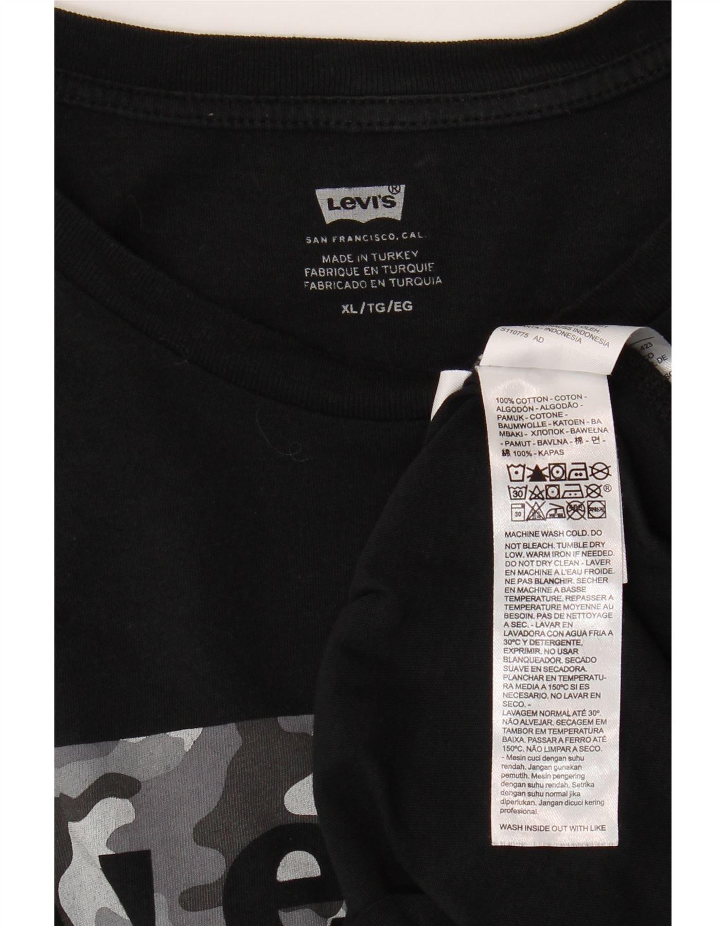 Męski T-shirt z grafiką LEVI'S Top XL, czarna bawełna