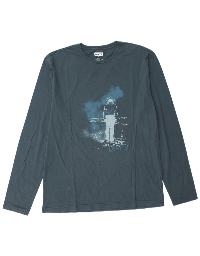 Męski graficzny top LEVI'S z długim rękawem, duży, granatowy, bawełniany