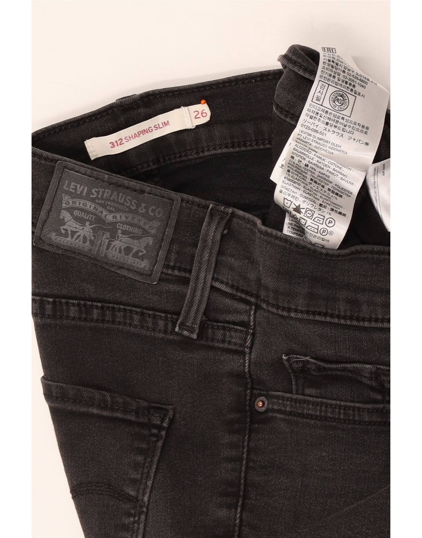 Damskie jeansy LEVI'S 312 Shaping W26 L30 Szara bawełna