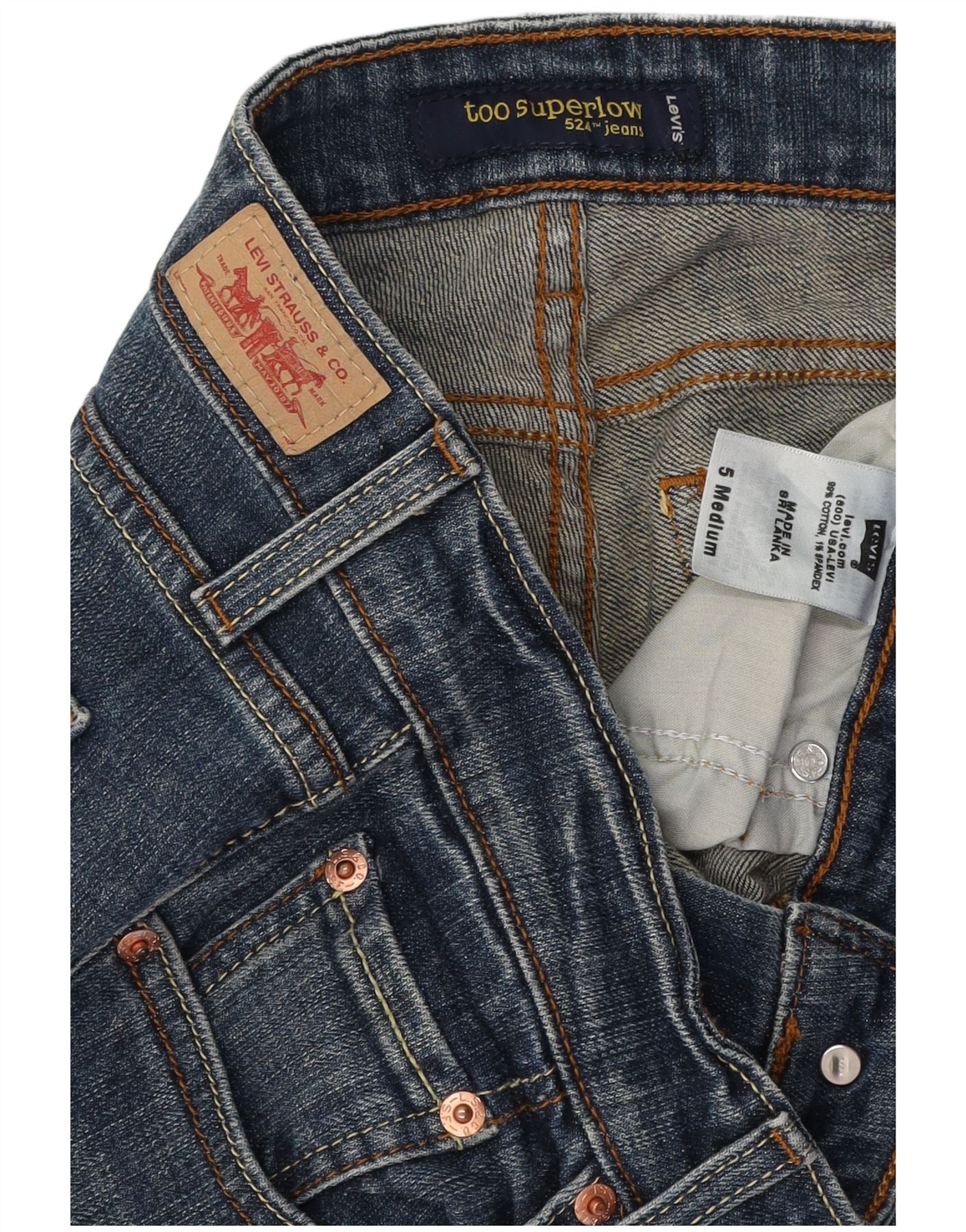 LEVI'S Damskie 524 Too Superlow Skinny Jeans US 5 Small W29 L32 Niebieskie bawełniane
