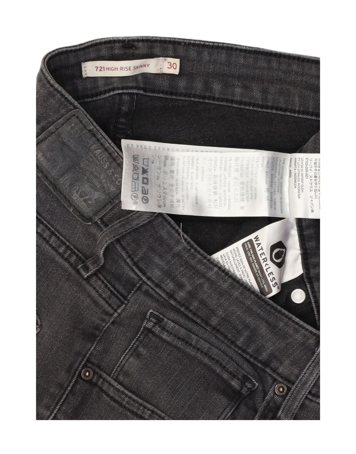 Damskie jeansy LEVI'S 711 z wysokim stanem, W30 L30, szara bawełna