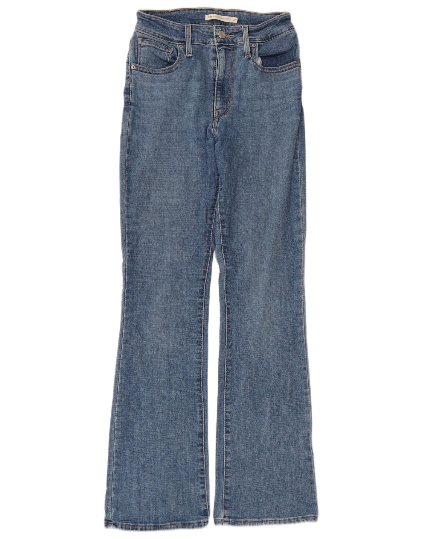 Damskie jeansy LEVI'S 725 z wysokim stanem Bootcut W26 L30 Niebieska bawełna