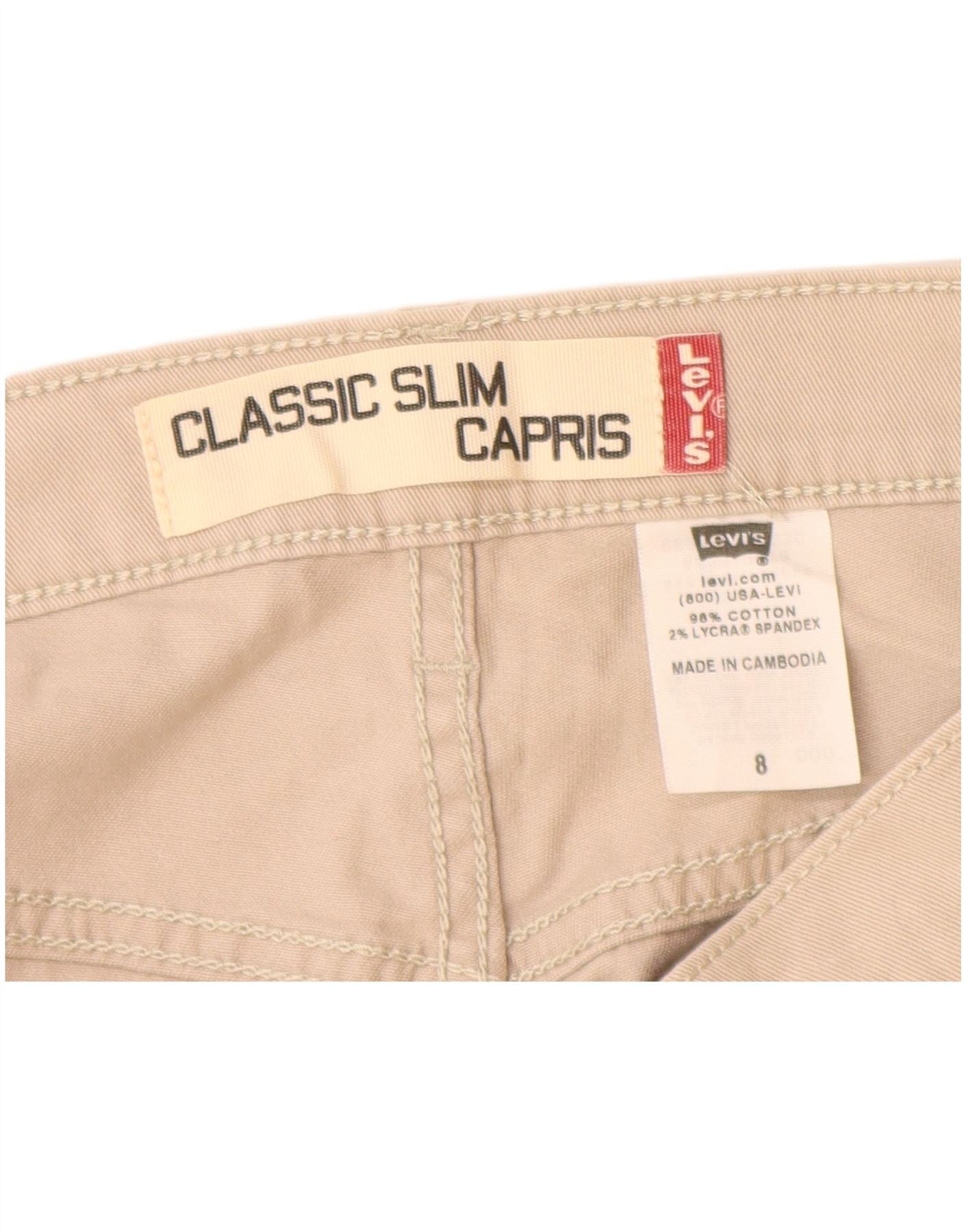 LEVI'S Womens Classic Slim Capri Trousers US 8 Medium W28 L24 Beige Cotton