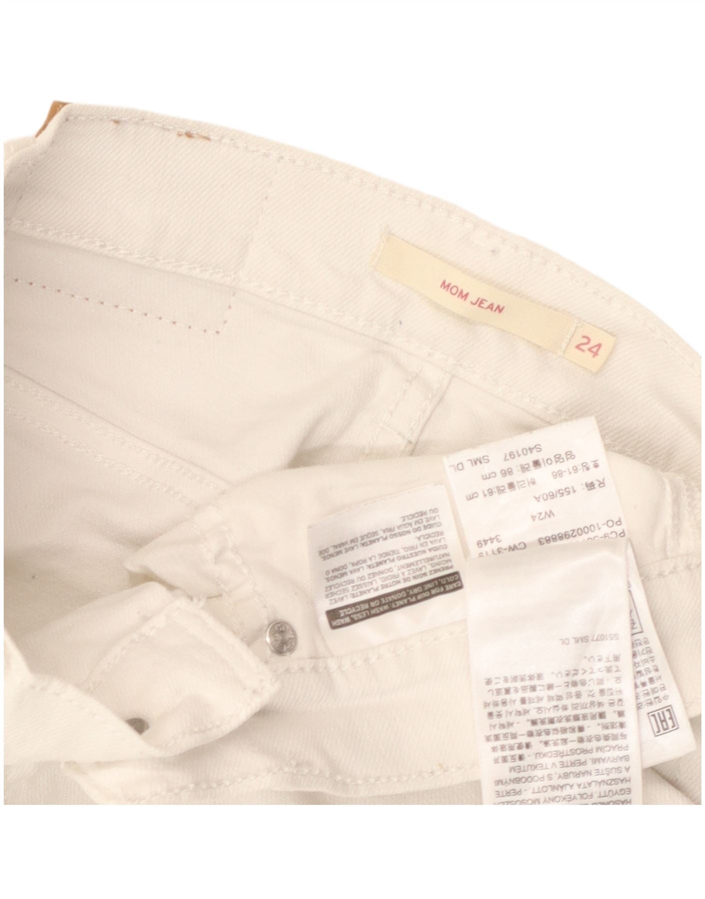 Damskie jeansy Levi's Mom Cropped W24 L24 Off White Cotton