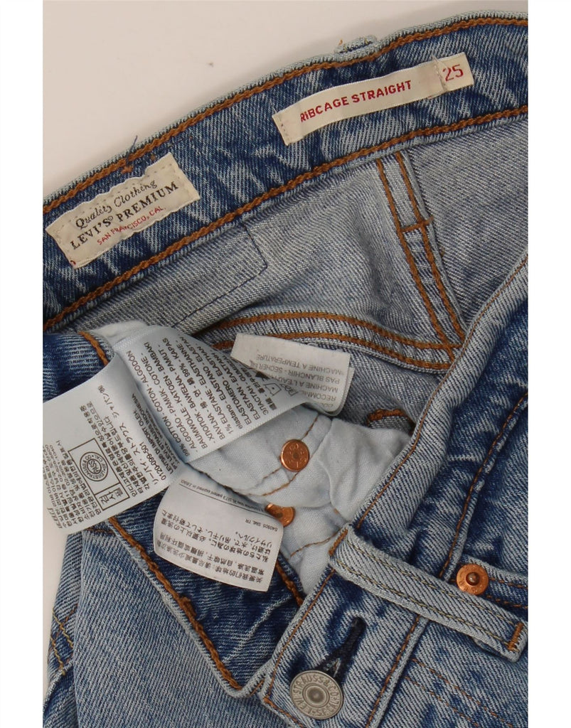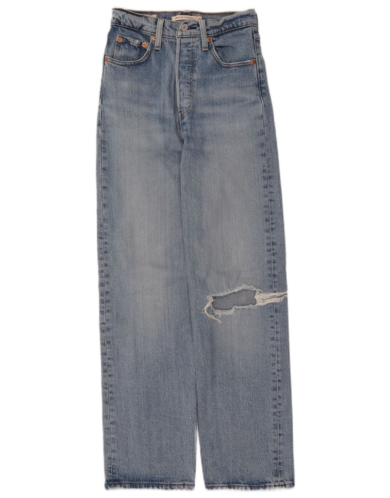 LEVI'S Womens Ribcage Distressed Straight Jeans W25 L29 Blue Cotton