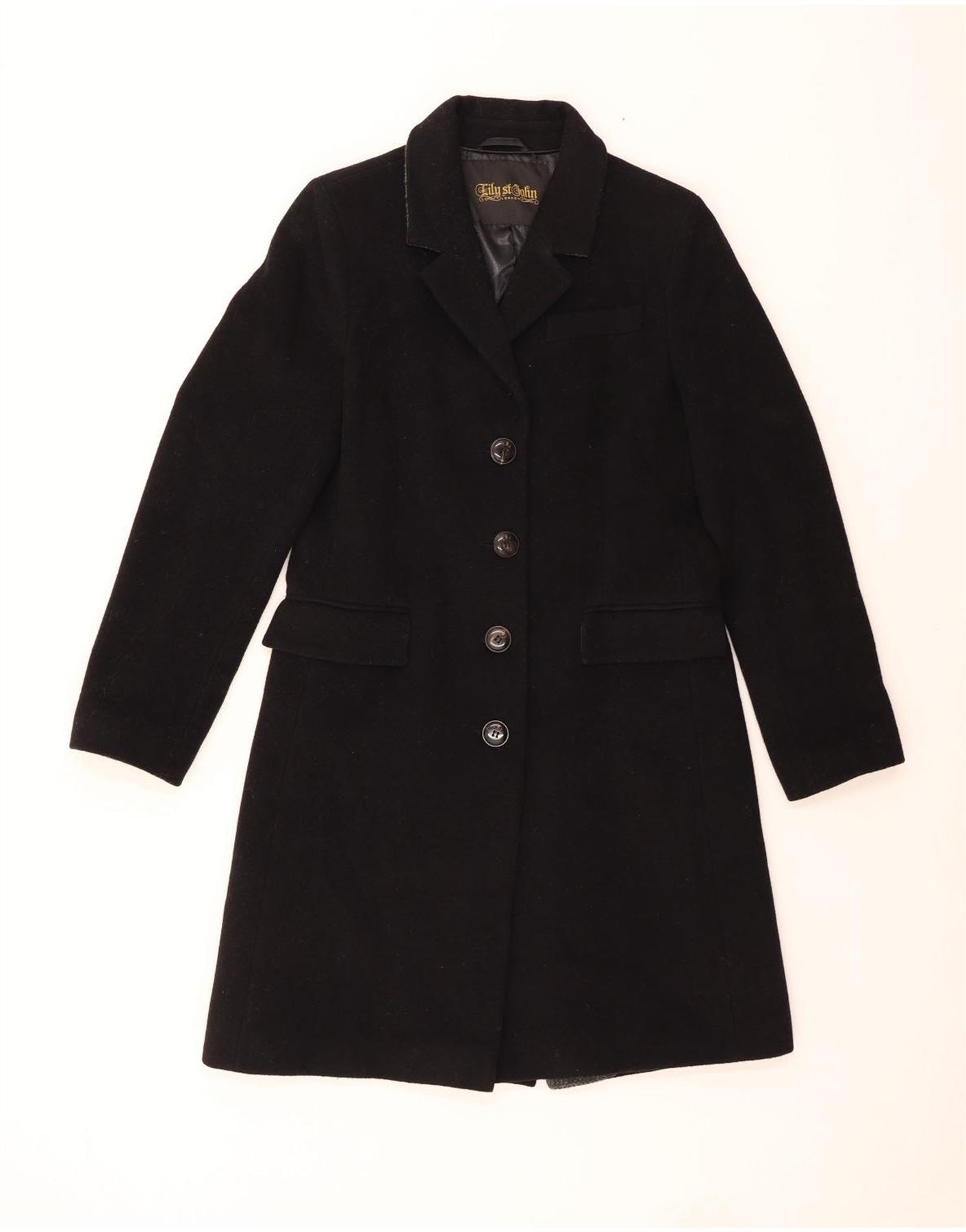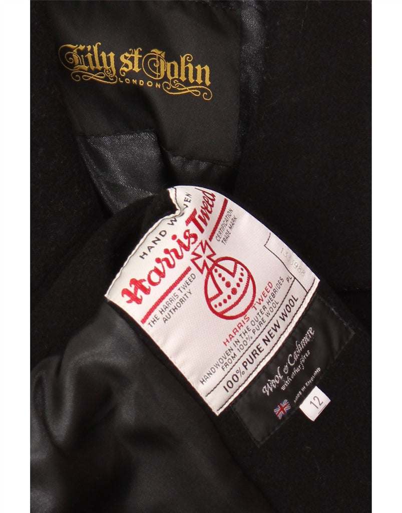 LILY ST JOHN Womens Harris Tweed Chesterfield Coat UK 12 Medium Black Wool
