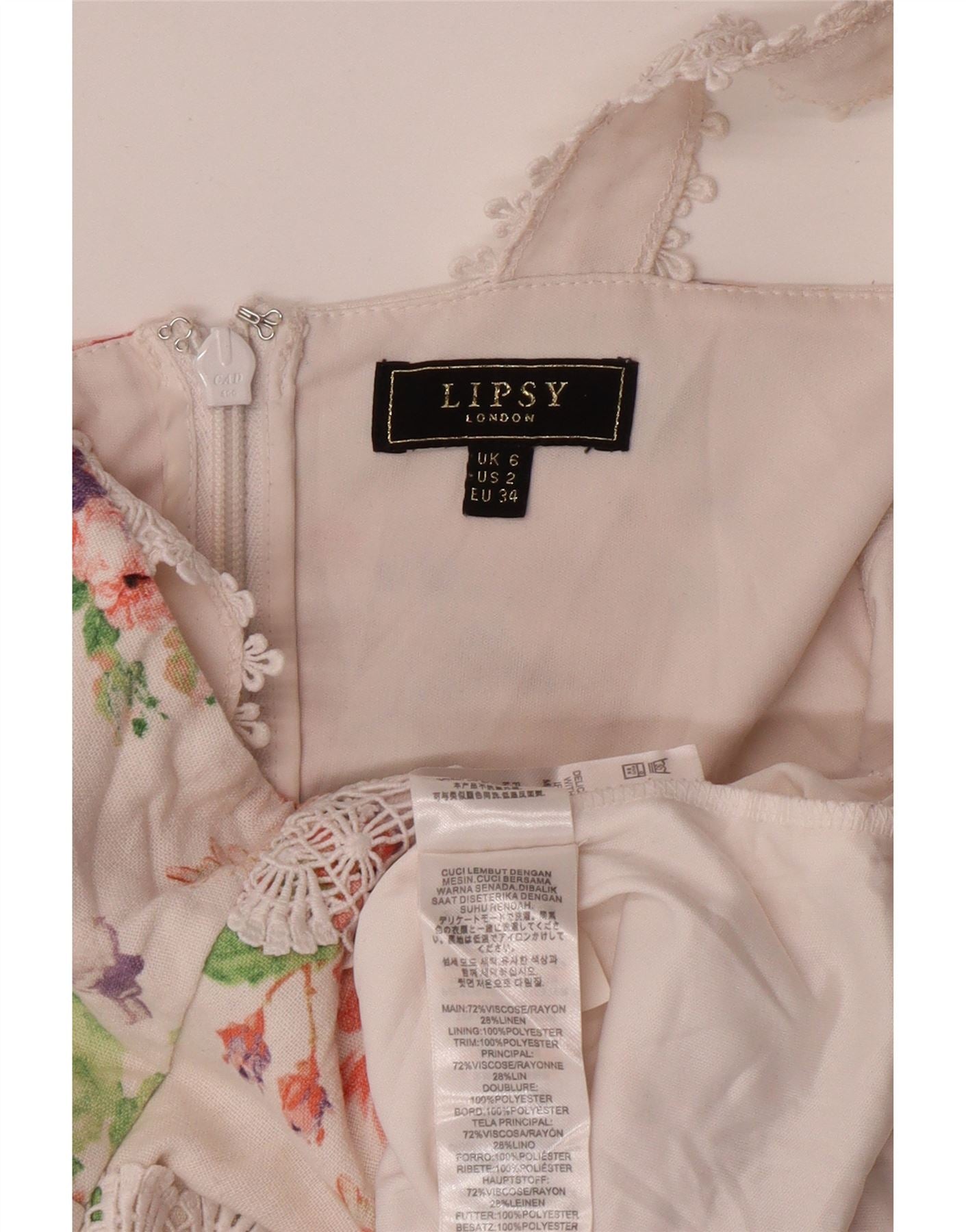 LIPSY Damska sukienka syrenka bez rękawów UK 6 XS Biała wiskoza w kwiaty