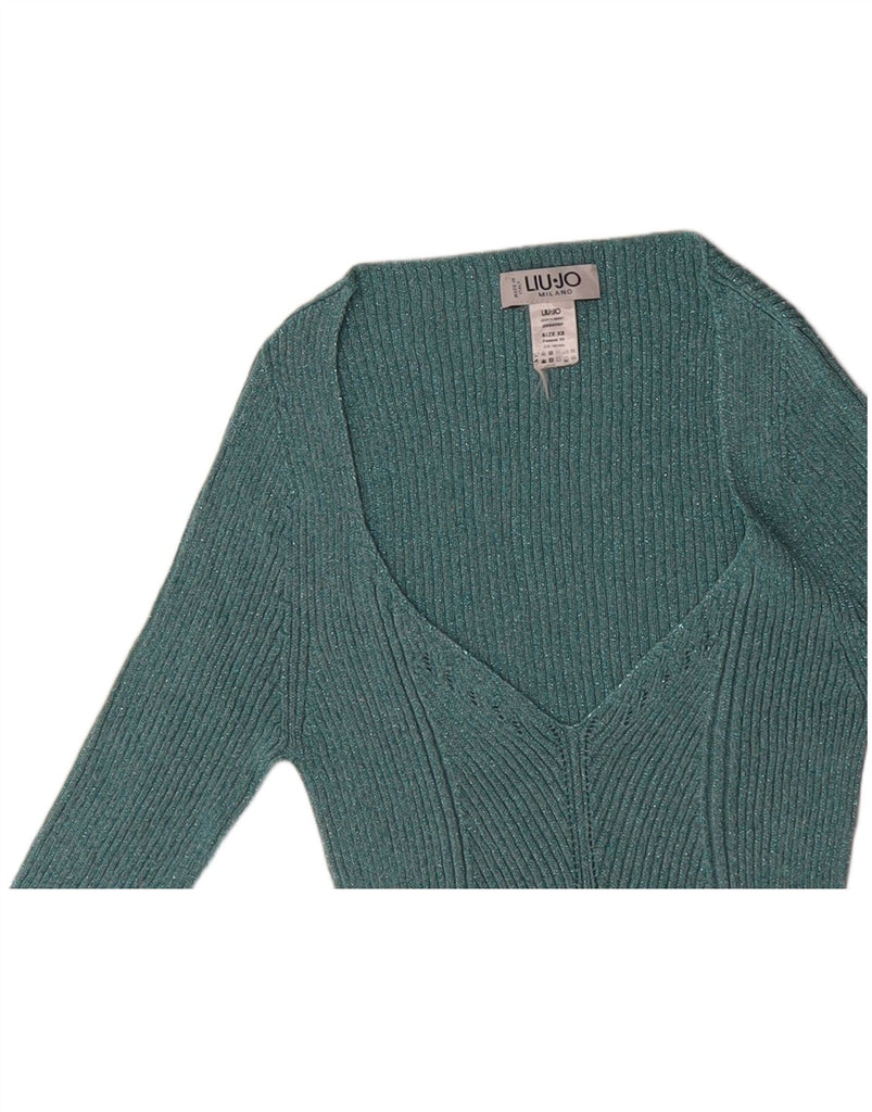 LIU JO Womens 3/4 Sleeve V-Neck Jumper Sweater UK 4 XS Blue Flecked