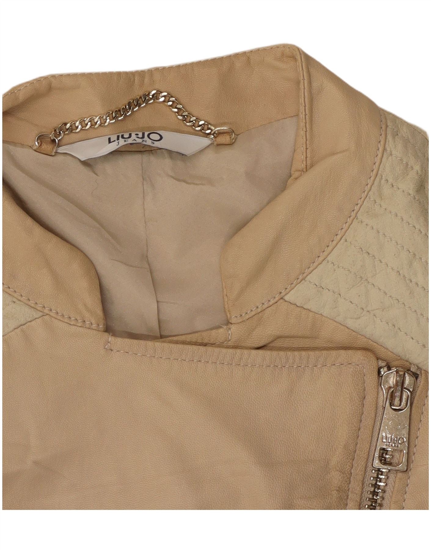 Damska kurtka motocyklowa Liu Jo IT 42, skóra w kolorze średniego beżu