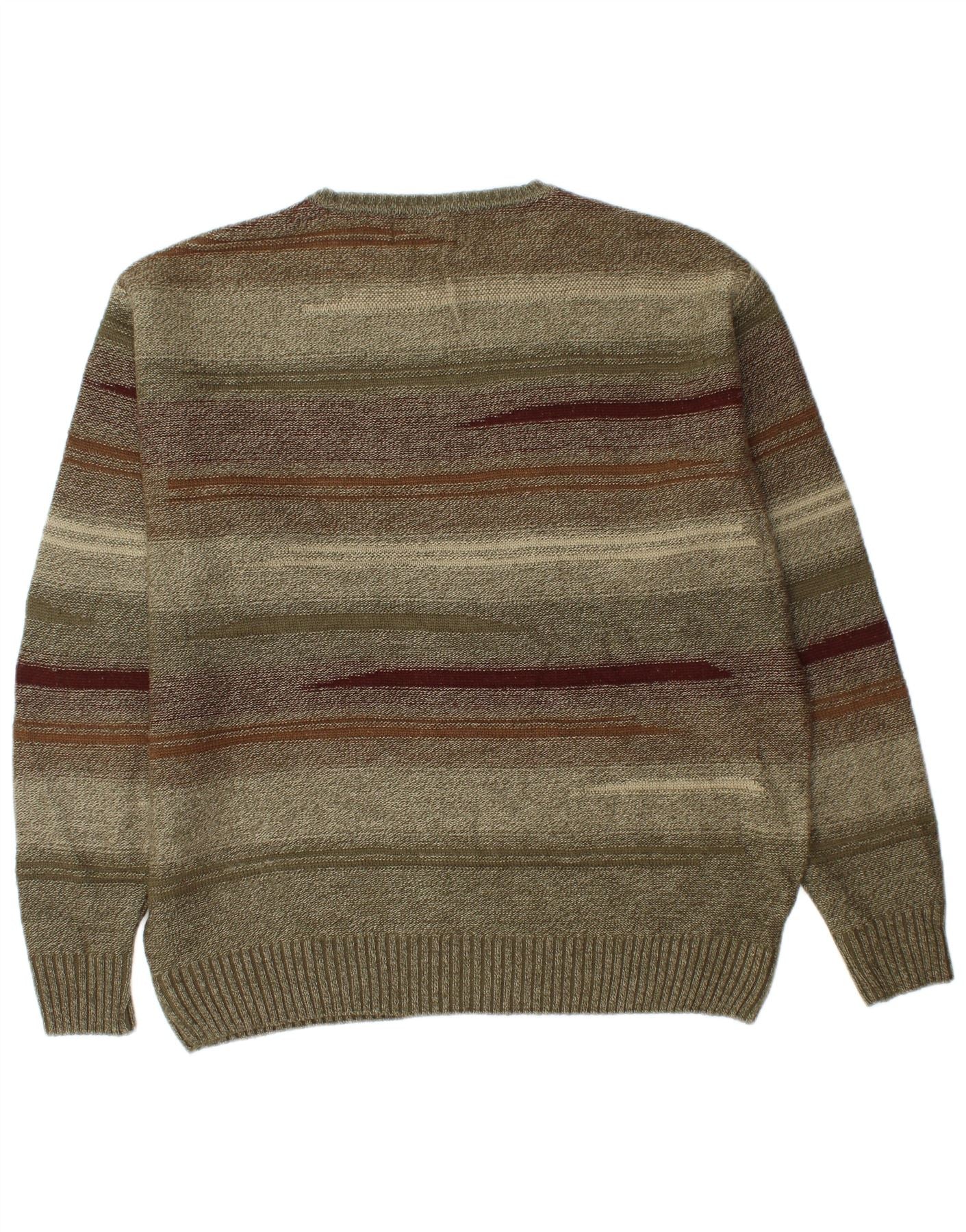 Męski sweter z okrągłym dekoltem LONDON FOG, akryl w średnie paski khaki