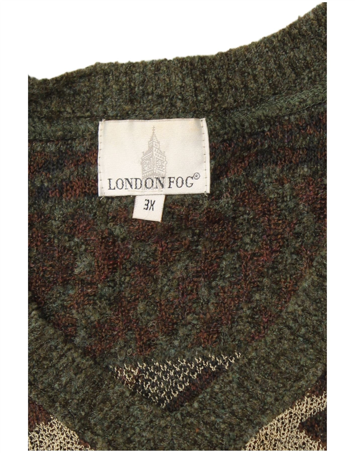Męski sweter z dekoltem w kształcie litery V, LONDON FOG, 3XL, khaki, Fair Isle