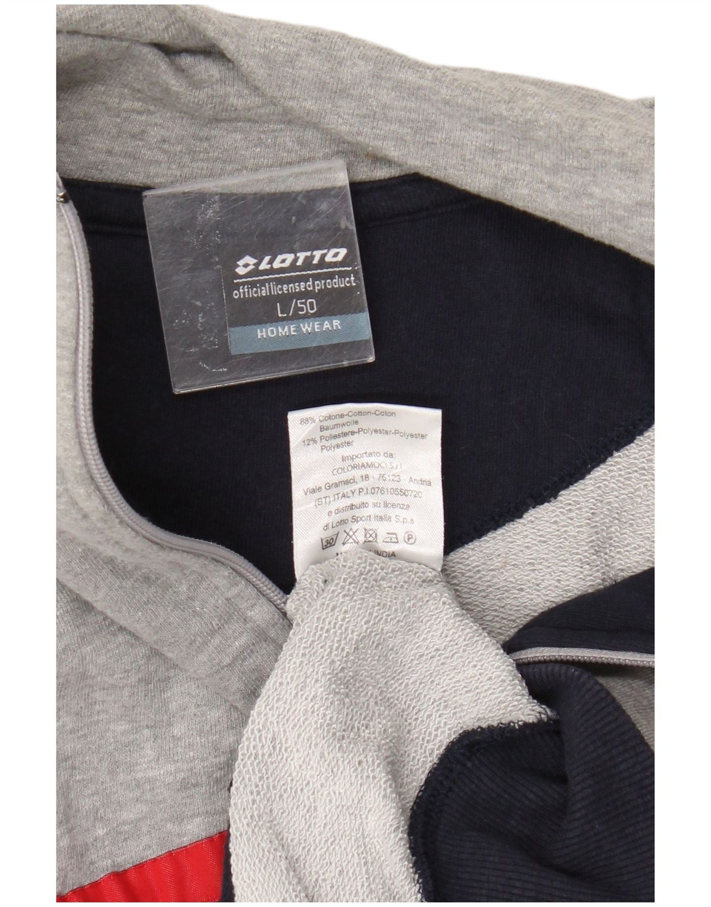 Męska kurtka dresowa Lotto z grafiką IT 50, duża, szara, bawełniana w bloki kolorów
