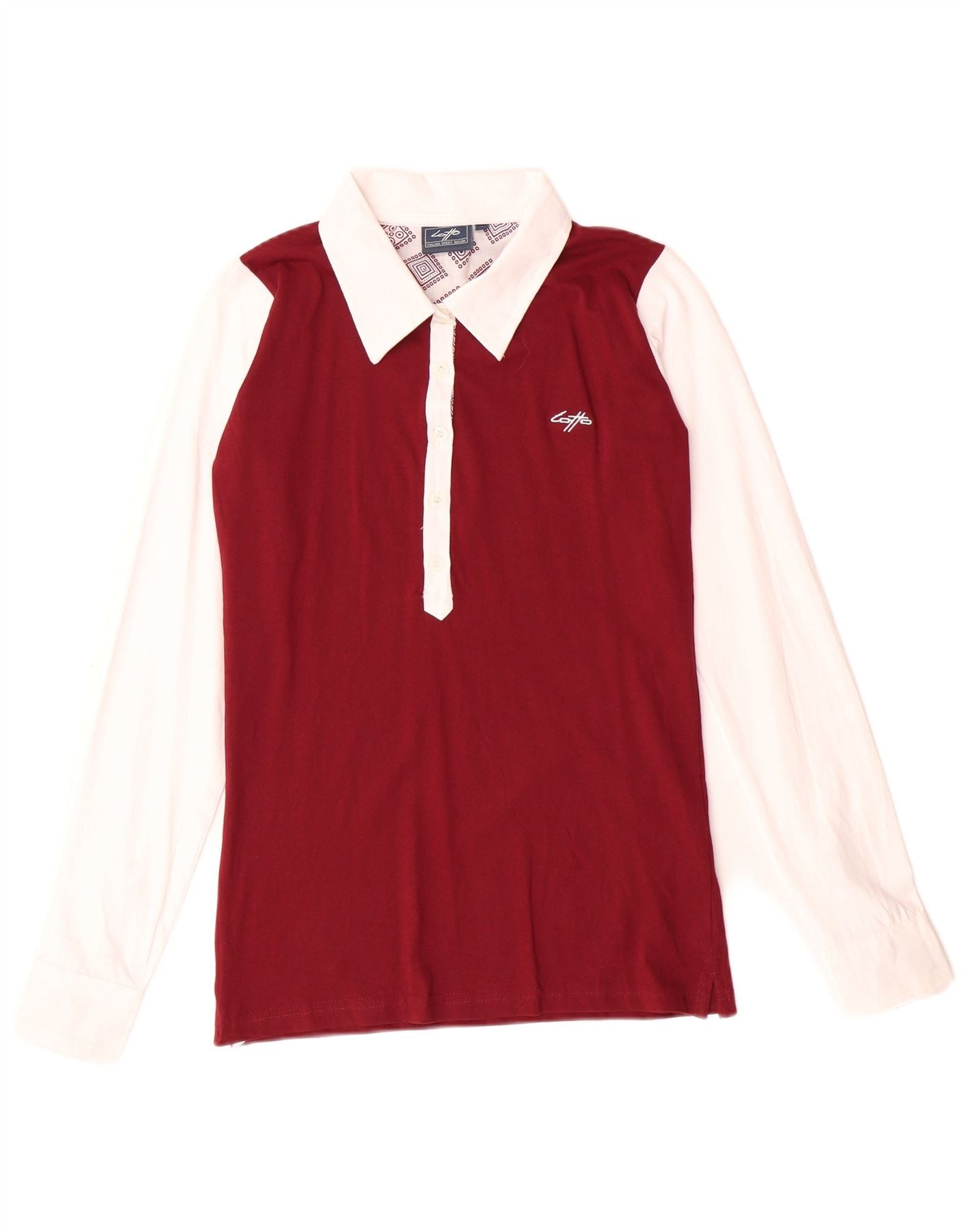 Damska koszulka polo do rugby z długim rękawem LOTTO UK 10, mała, bordowa, z blokami kolorów