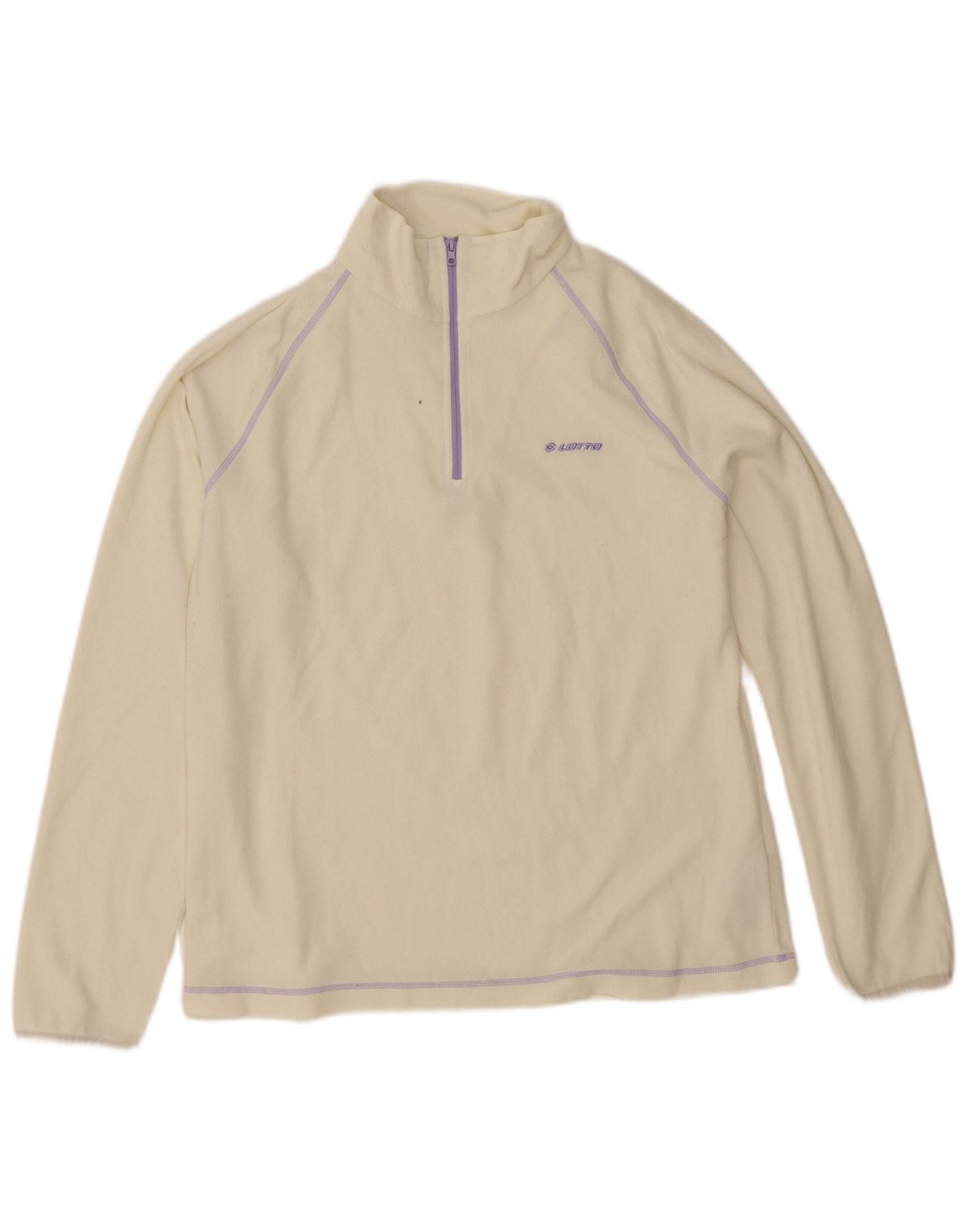 - Opis sztucznej inteligencji: Ta damska bluza Lotto jest wykonana z miękkiego, lekkiego polaru poliestrowego w kolorze złamanej bieli. Ma wysoki dekolt i praktyczne zapięcie na zamek błyskawiczny o długości 1/4 w kontrastowym fioletowym kolorze. Długie rękawy i regularny krój zapewniają wygodę i swobodę ruchów. Subtelne fioletowe przeszycia i małe logo Lotto dodają sportowego akcentu. Ten uniwersalny element idealnie nadaje się do nakładania warstw.