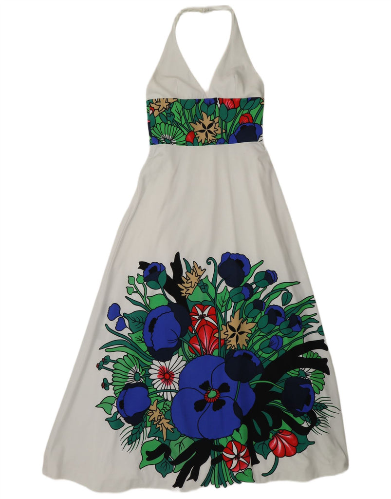 LOUIS FERAUD Womens Halter Dress EU 38 Medium White Floral Polyester