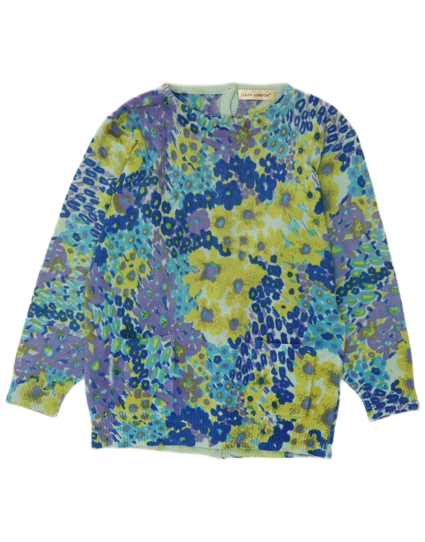 LOUIS LONDON Damski sweter rozpinany EU 38 Średni niebieski z nadrukiem zwierzęcym