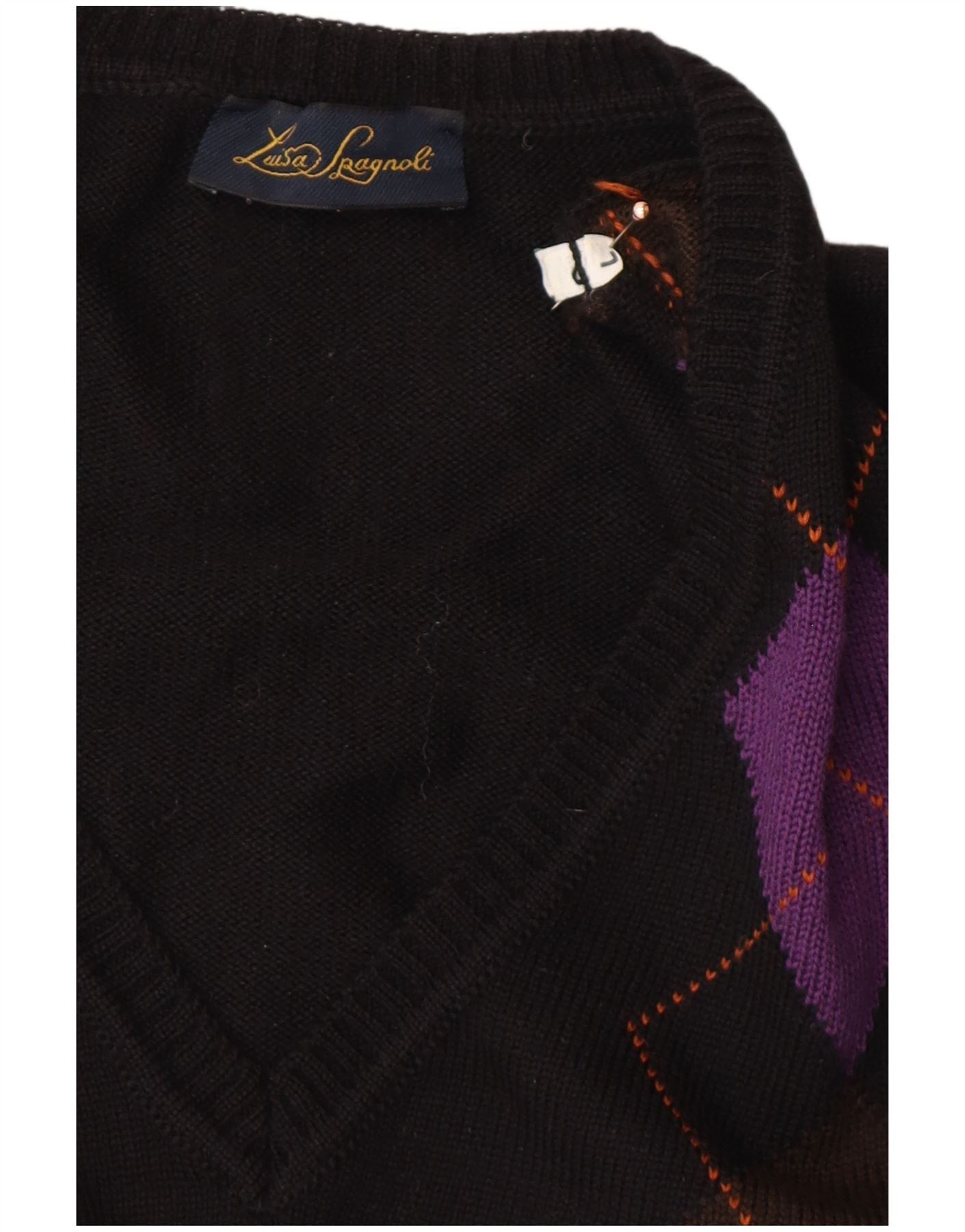 LUISA SPAGNOLI Damski sweter z dekoltem w kształcie litery V, UK 14, duży czarny