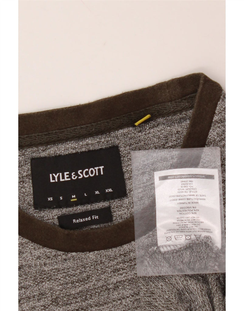 LYLE & SCOTT Mens Relaxed Fit T-Shirt Top Medium Grey Pinstripe Cotton