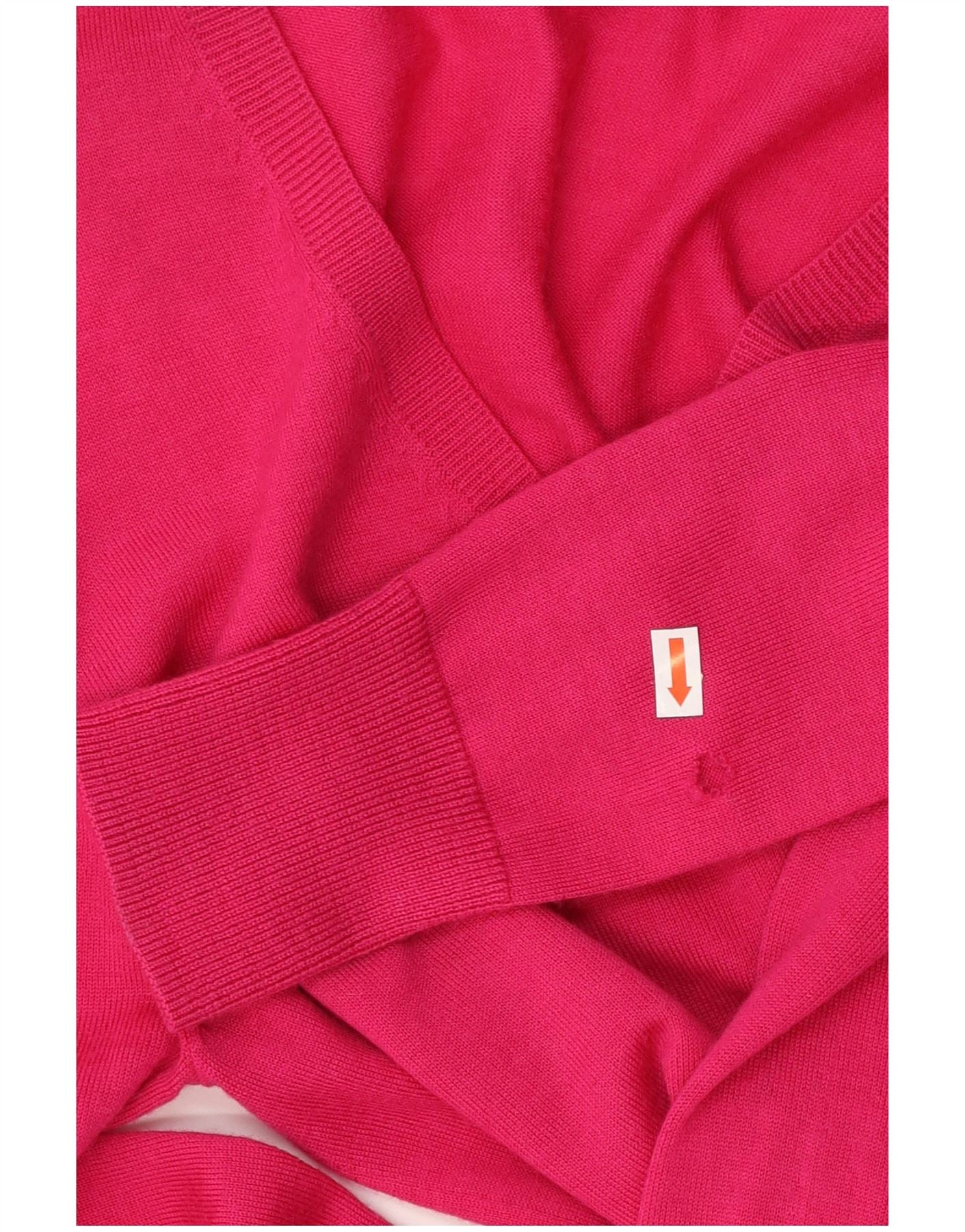 Damski sweter z dekoltem w kształcie litery V, Lyle & Scott, UK 10, mały, różowy, wełna merynosów