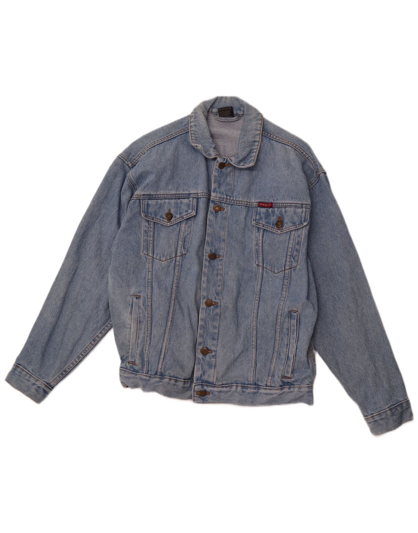 Home > Damskie > Odzież Depopa > Damska kurtka dżinsowa MAGIC VENTURE UK 16, duża, niebieska, bawełniana