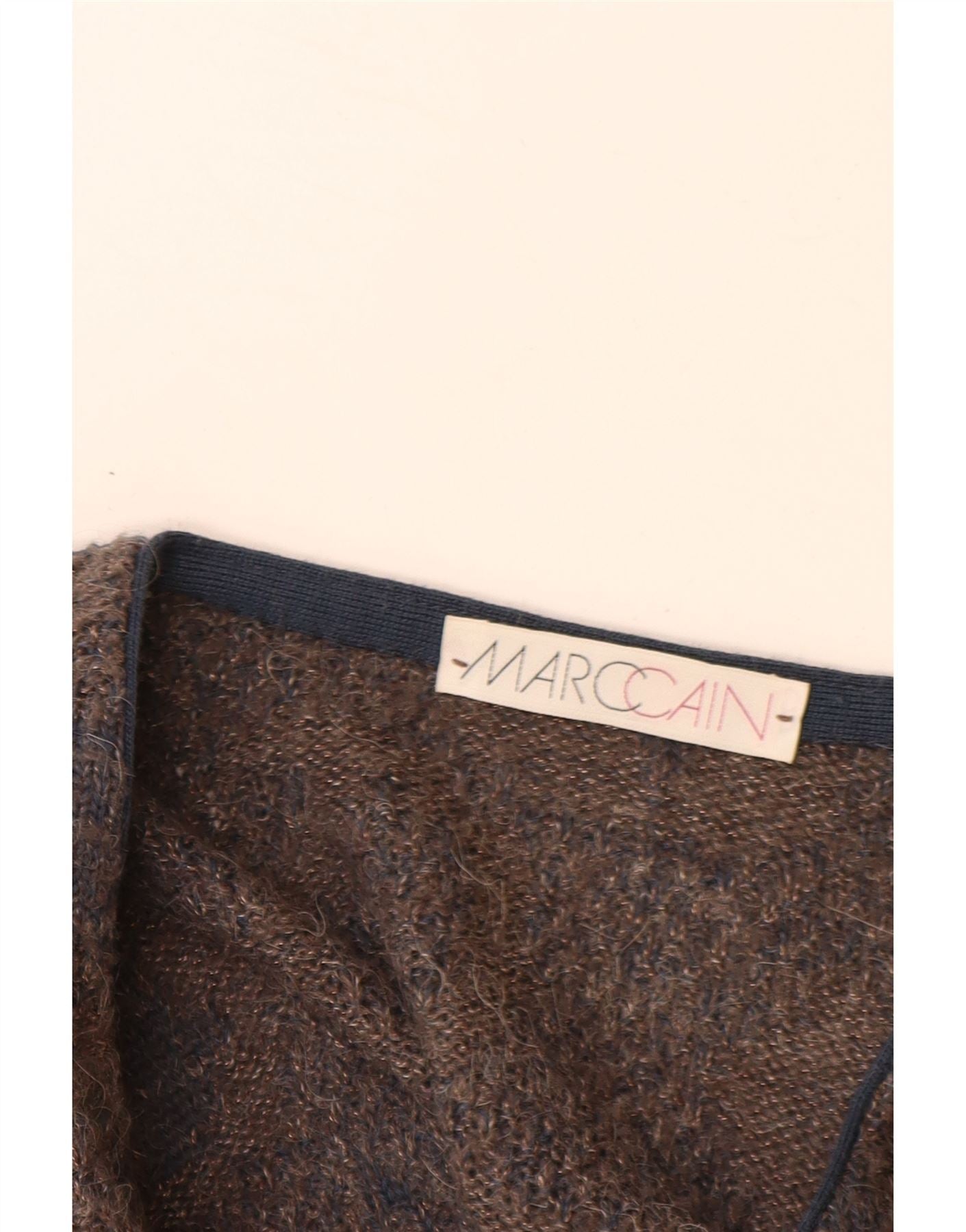 MARCCAIN Męski sweter z dekoltem w kształcie litery V, XL, brązowa, geometryczna wełna