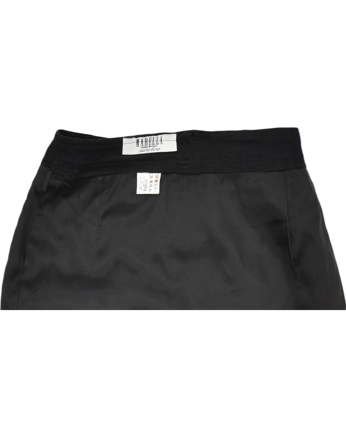 MARELLA Damska prosta spódnica z wysokim stanem UK 12 Medium W26 Czarna lniana