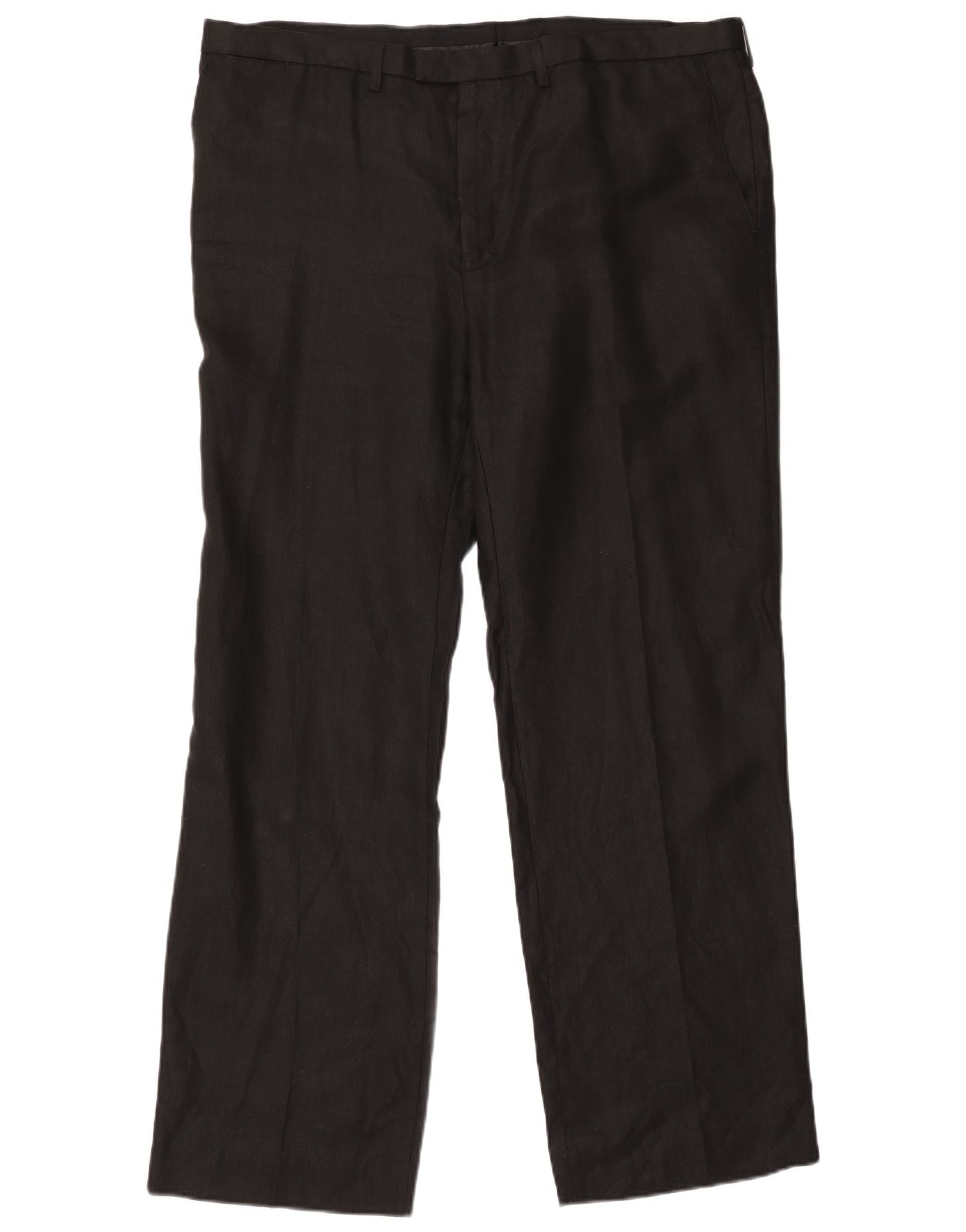 MARKS & SPENCER Męskie proste spodnie garniturowe z autografem W42 L33 Czarne lniane