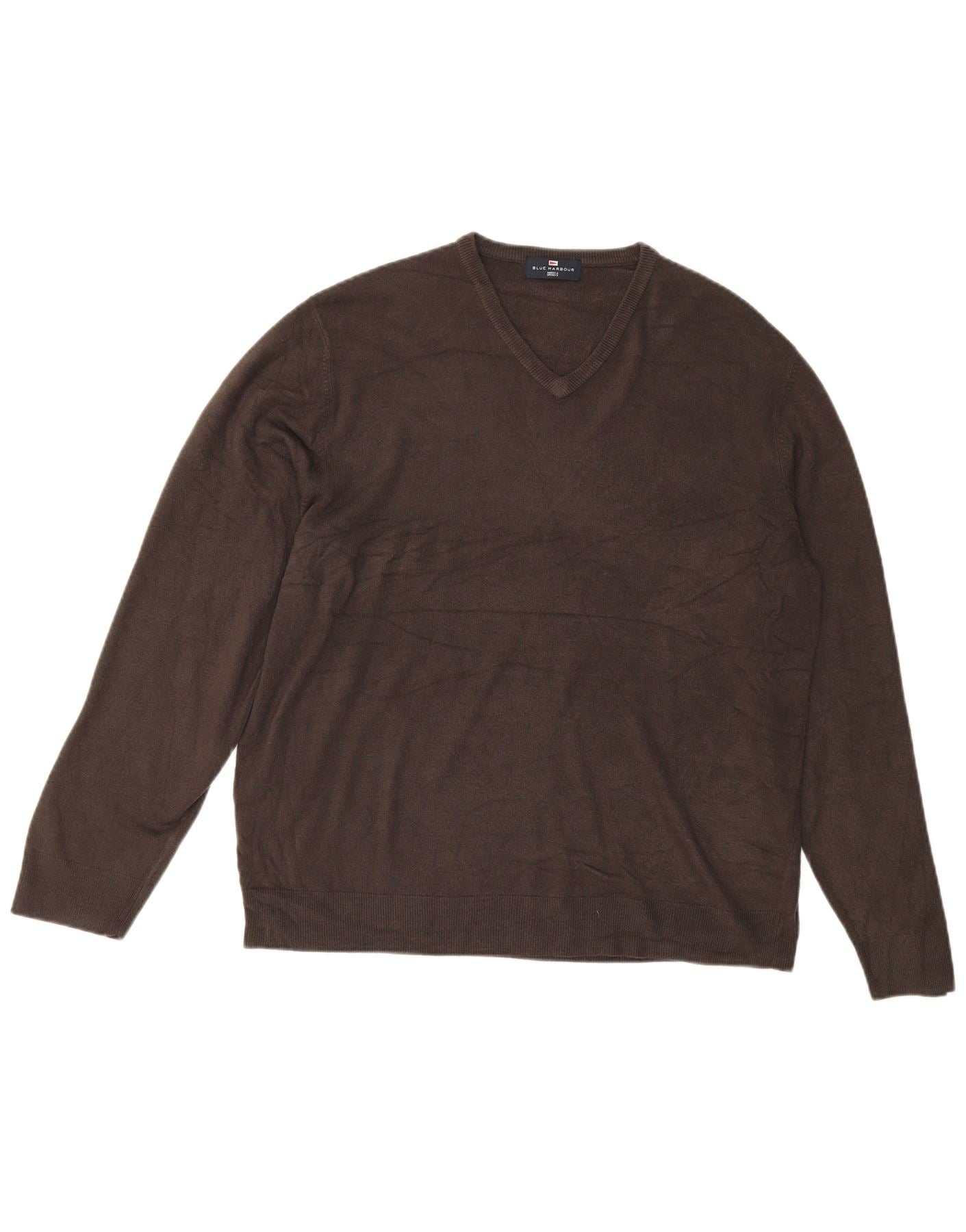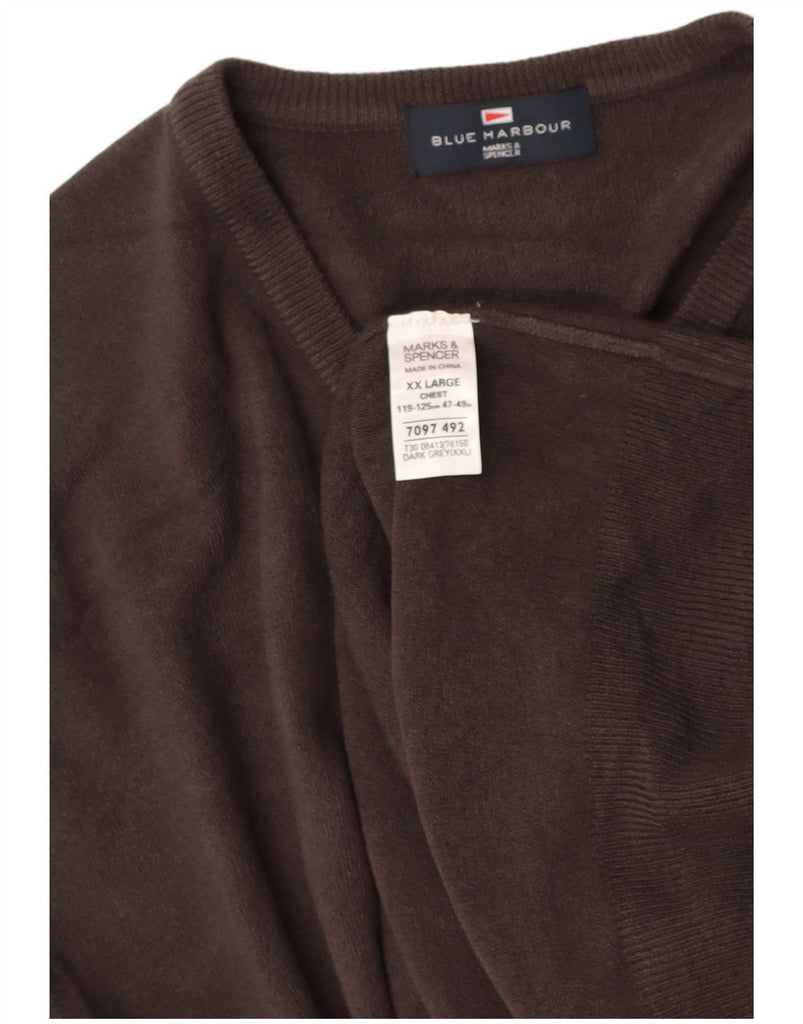 MARKS & SPENCER Mens Blue Harbour V-Neck Jumper Sweater 2XL Grey Acrylic