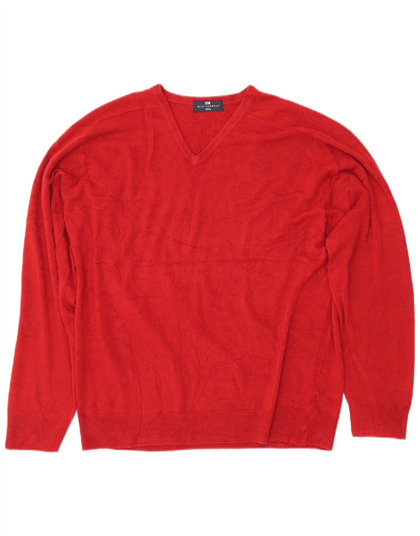 MARKS & SPENCER Męski sweter w kolorze niebieskim z dekoltem w kształcie litery V, duży, czerwony, akrylowy