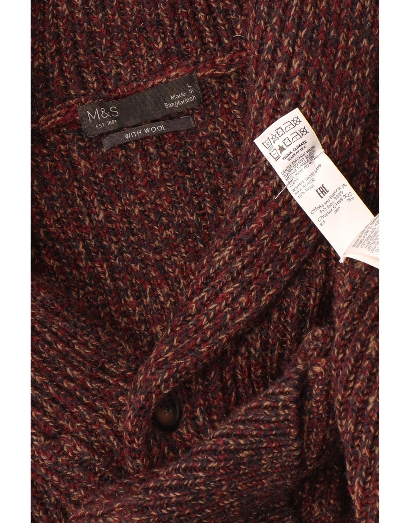 MARKS & SPENCER Męski sweter rozpinany, duży, bordowy, nakrapiany akryl