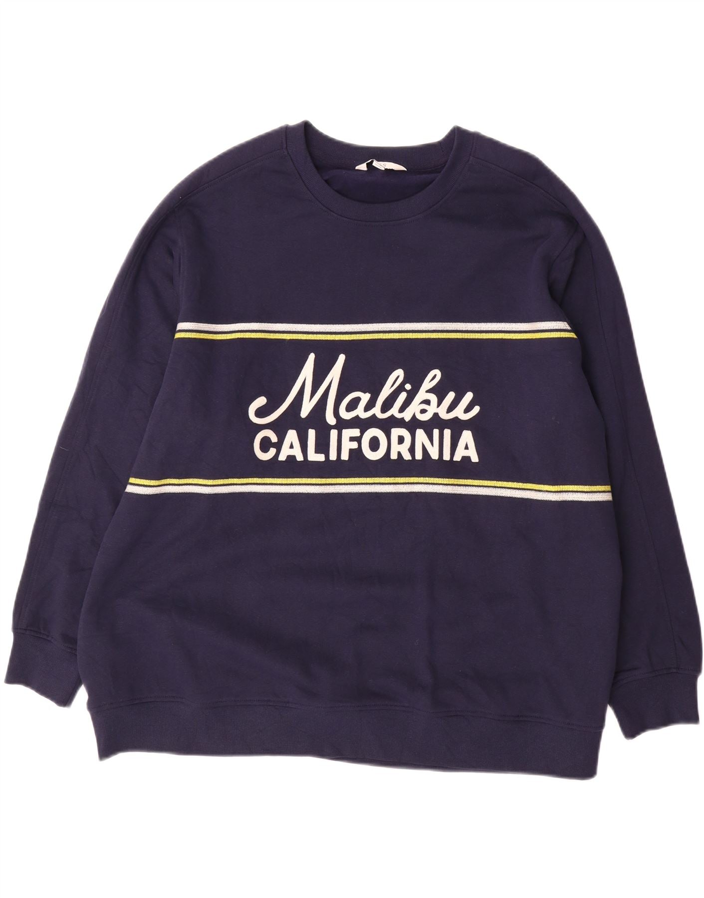MARKS & SPENCER Męski sweter z grafiką Malibu XL, granatowy, bawełniany