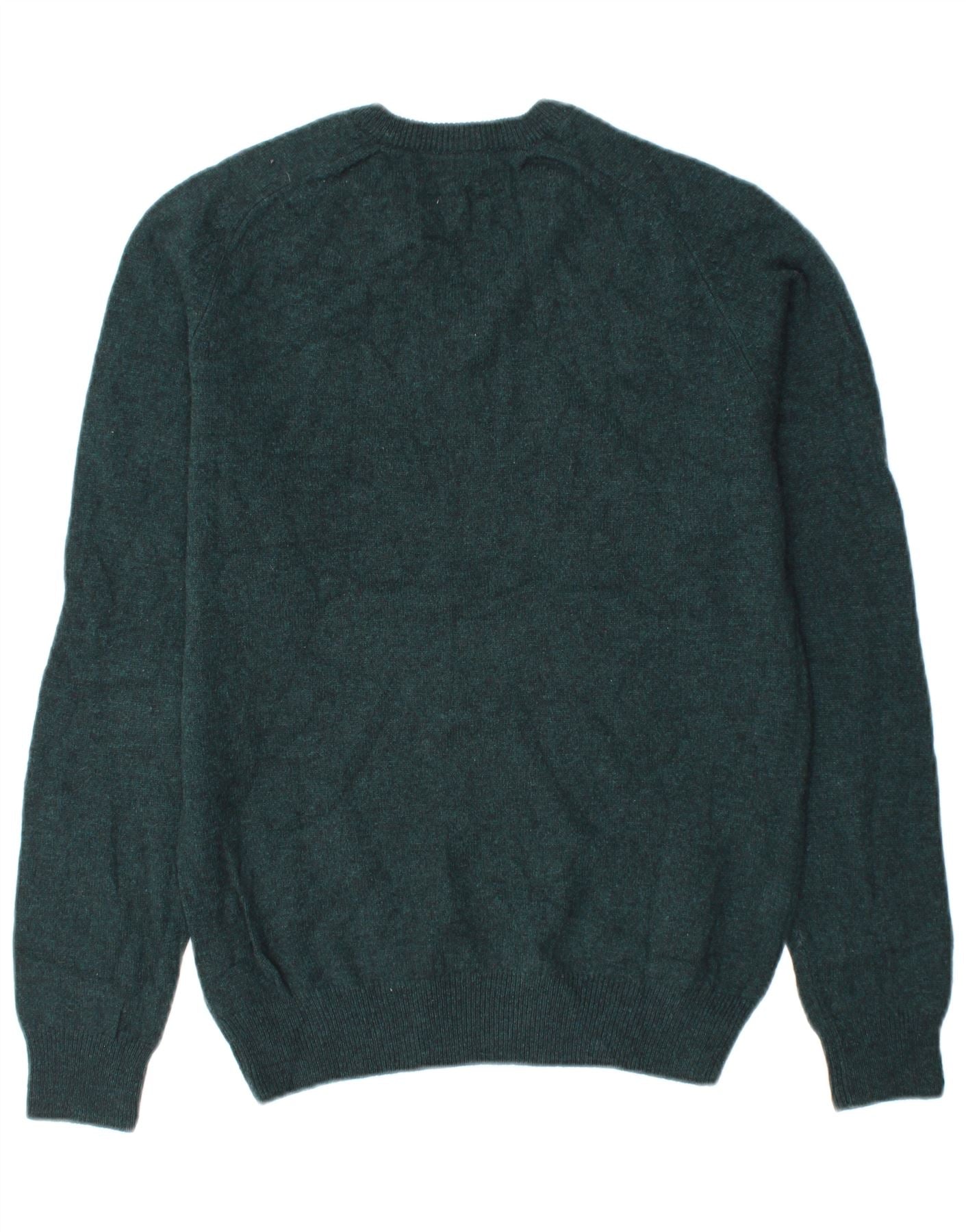 MARKS & SPENCER Męski sweter z dekoltem w kształcie litery V, średnio zielony, wełna owcza