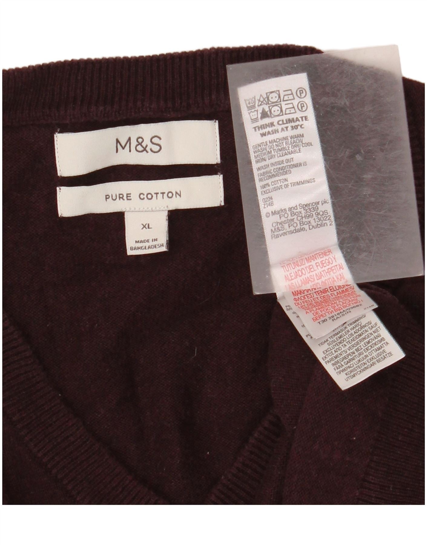 Marks & Spencer Męski sweter z dekoltem w kształcie litery V, XL, bordowy, bawełniany