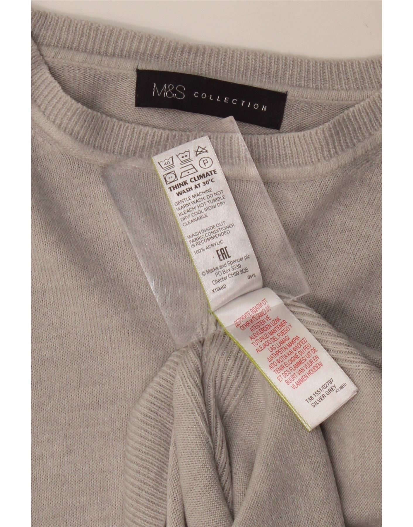 MARKS & SPENCER Damski sweter z dekoltem w łódkę UK 12 Średni szary akryl