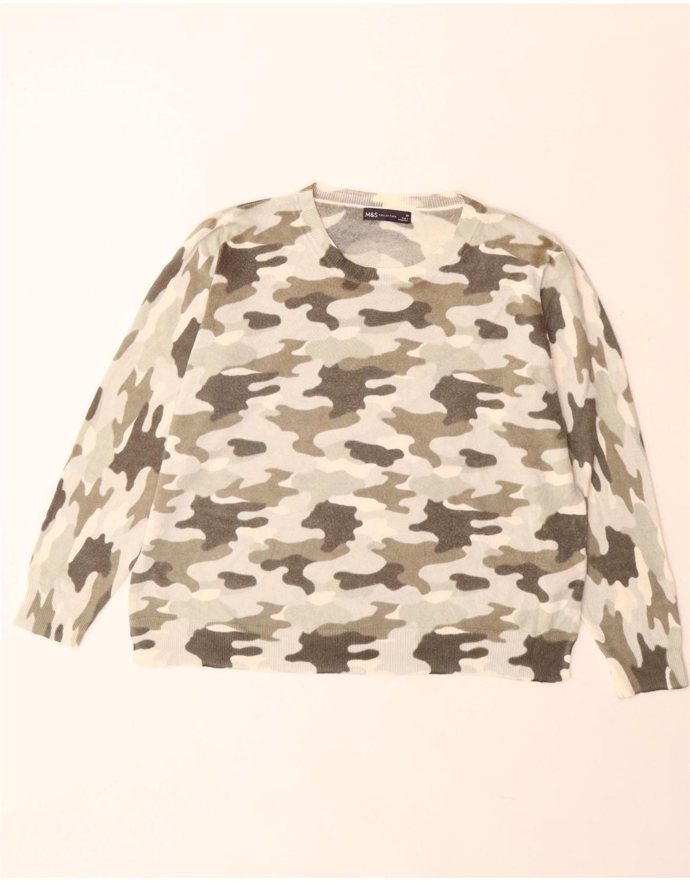 MARKS & SPENCER Damski sweter z dekoltem w łódkę UK 20 2XL Beżowy Kamuflaż
