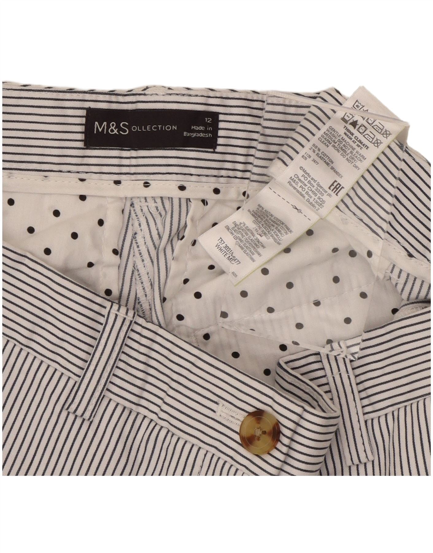 Damskie spodenki Chino MARKS & SPENCER UK 12 Medium W30 w białe prążki