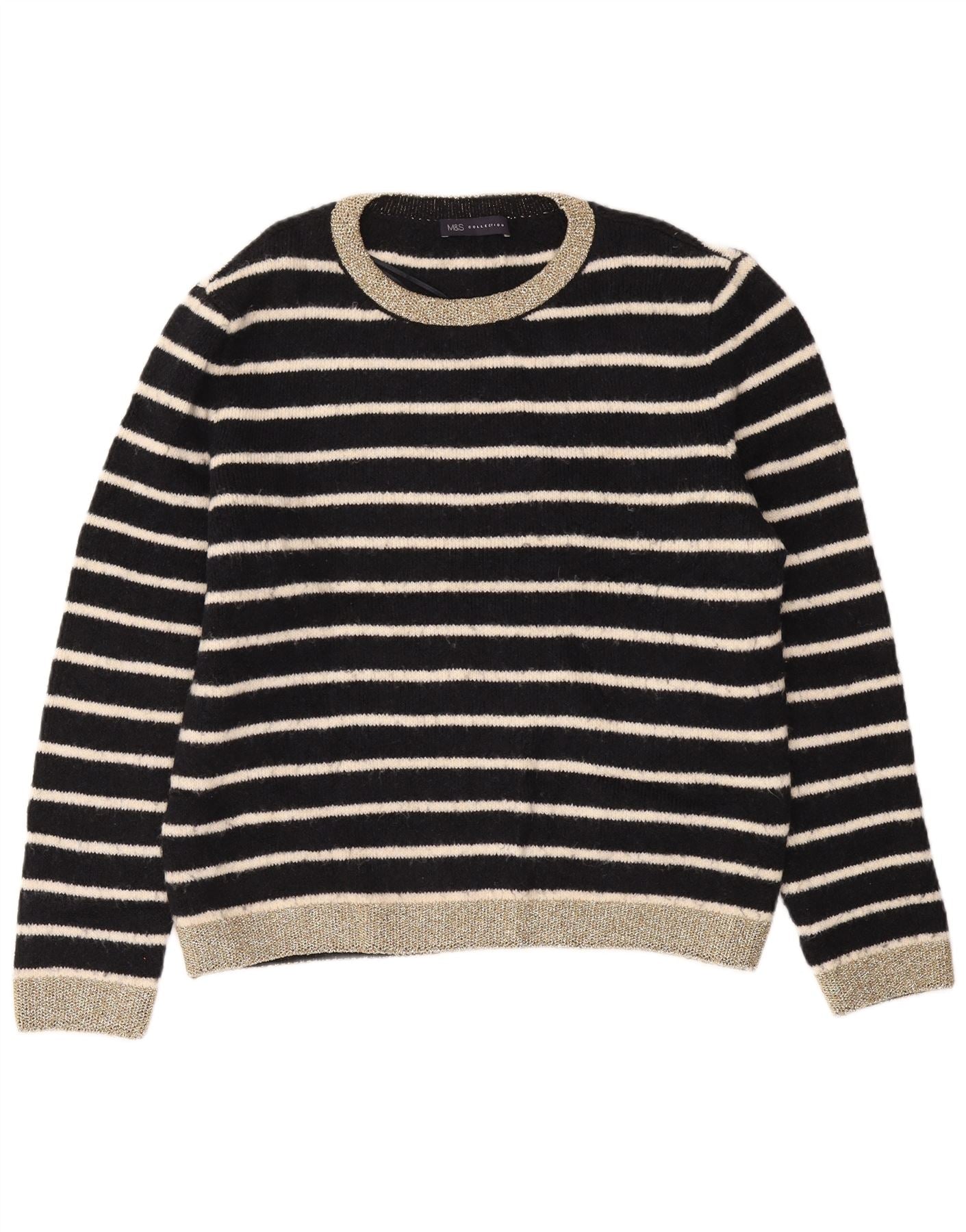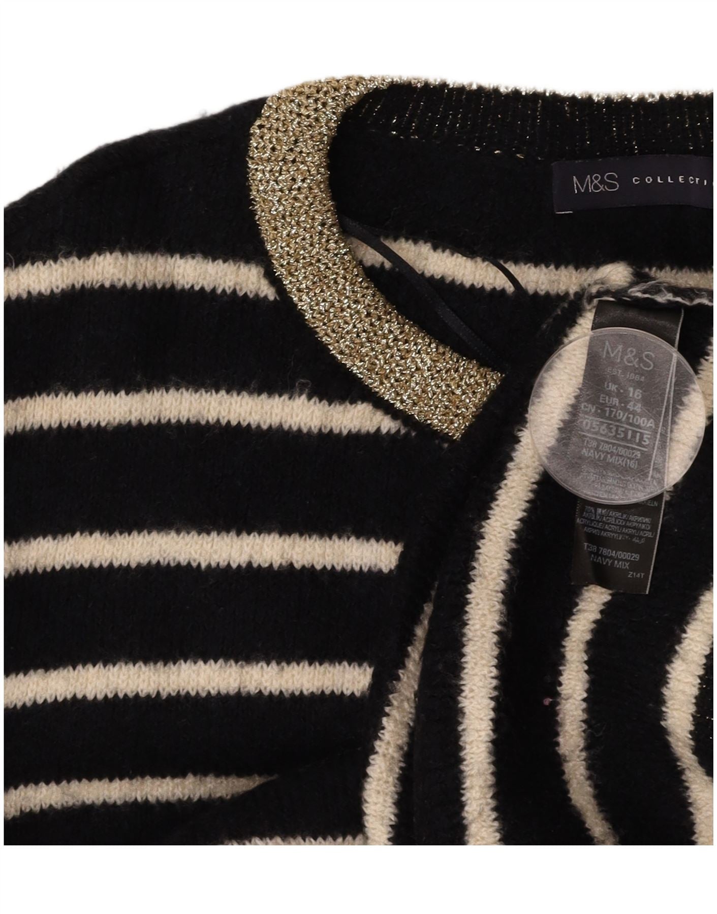 MARKS & SPENCER Damski sweter z okrągłym dekoltem UK 16, duże czarne paski
