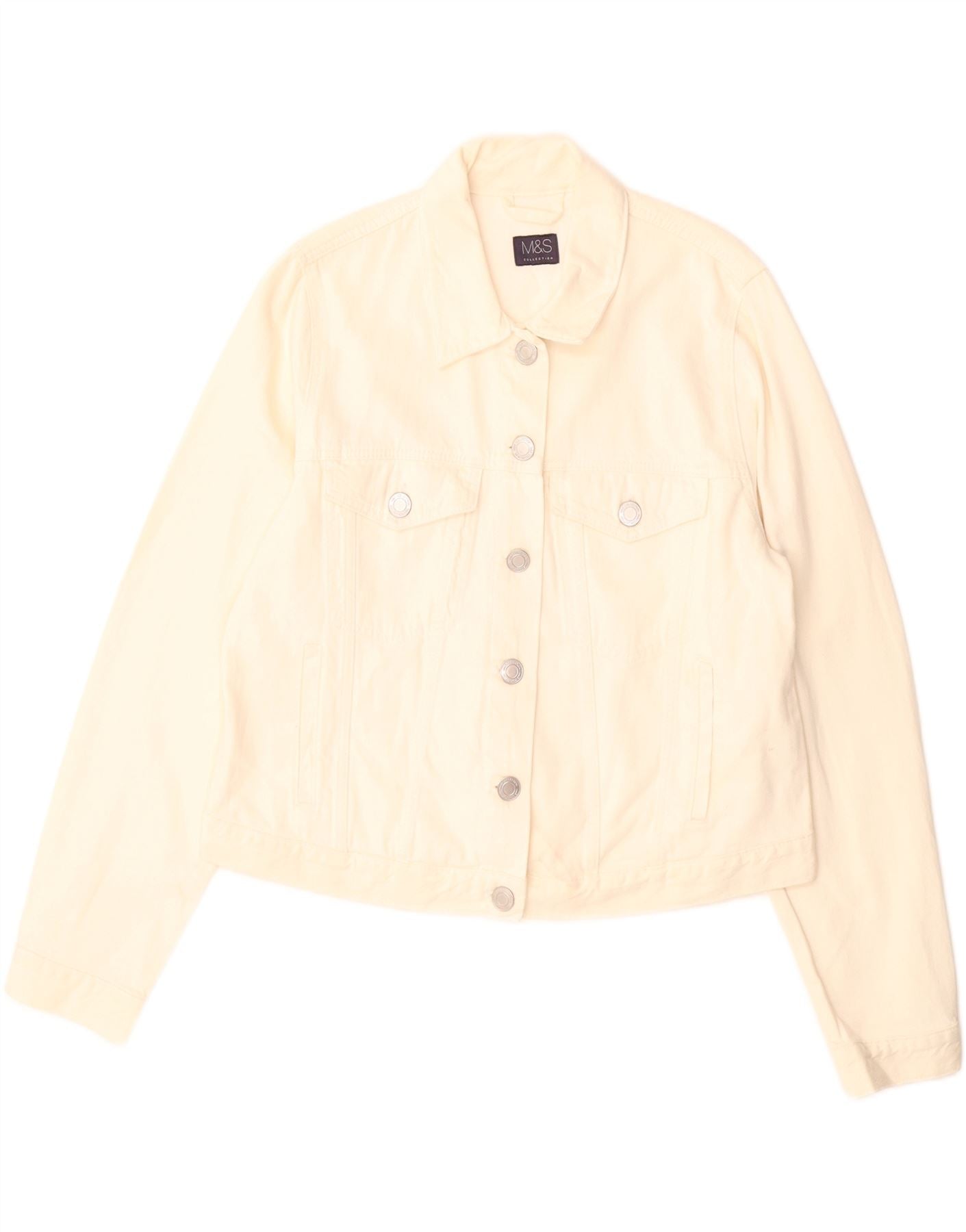 Marks & Spencer Damska kurtka dżinsowa Crop UK 16, duża, złamanej bieli, bawełniana