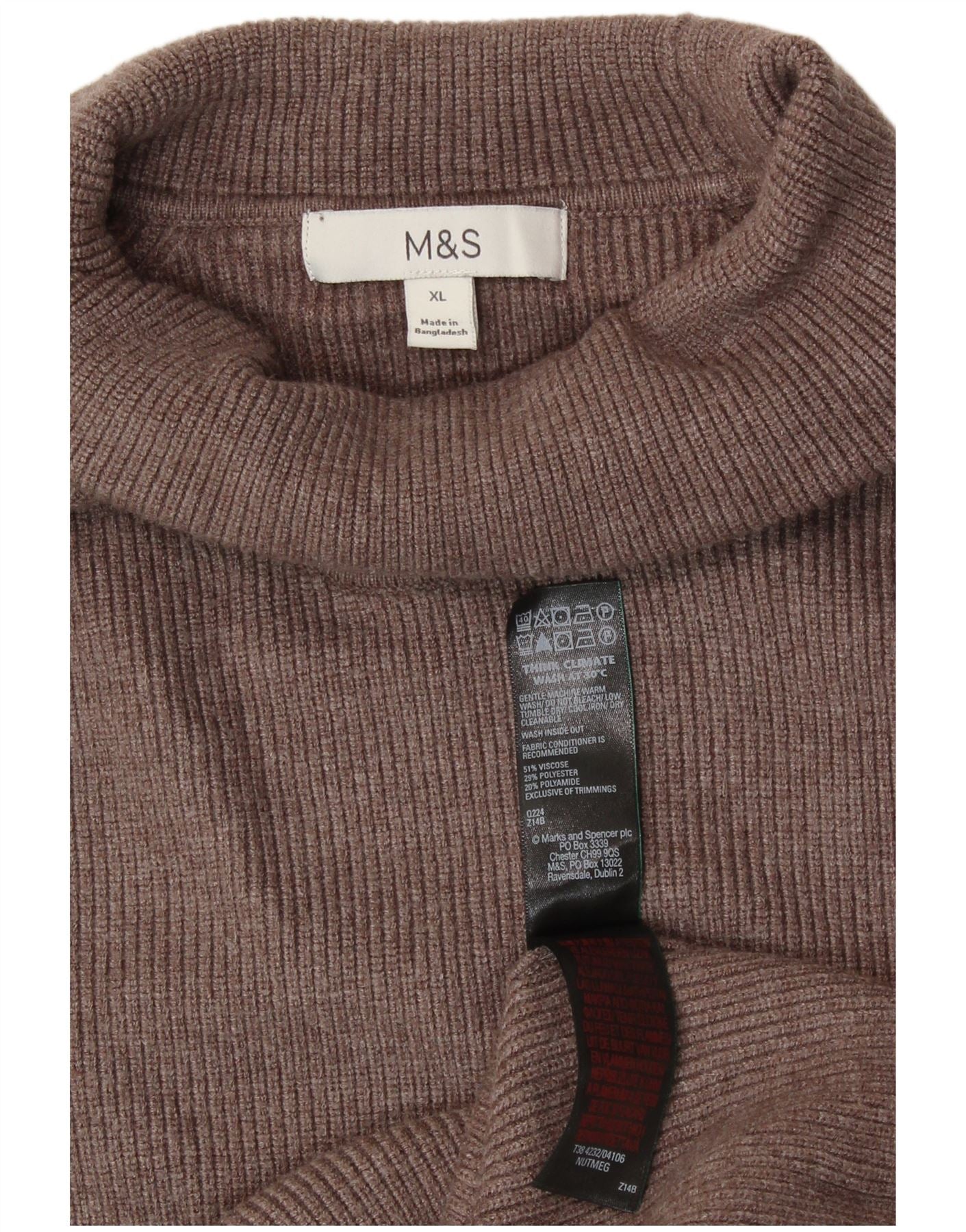 MARKS & SPENCER Womens Roll Neck Jumper Sweater UK 18 XL Brown Viscose