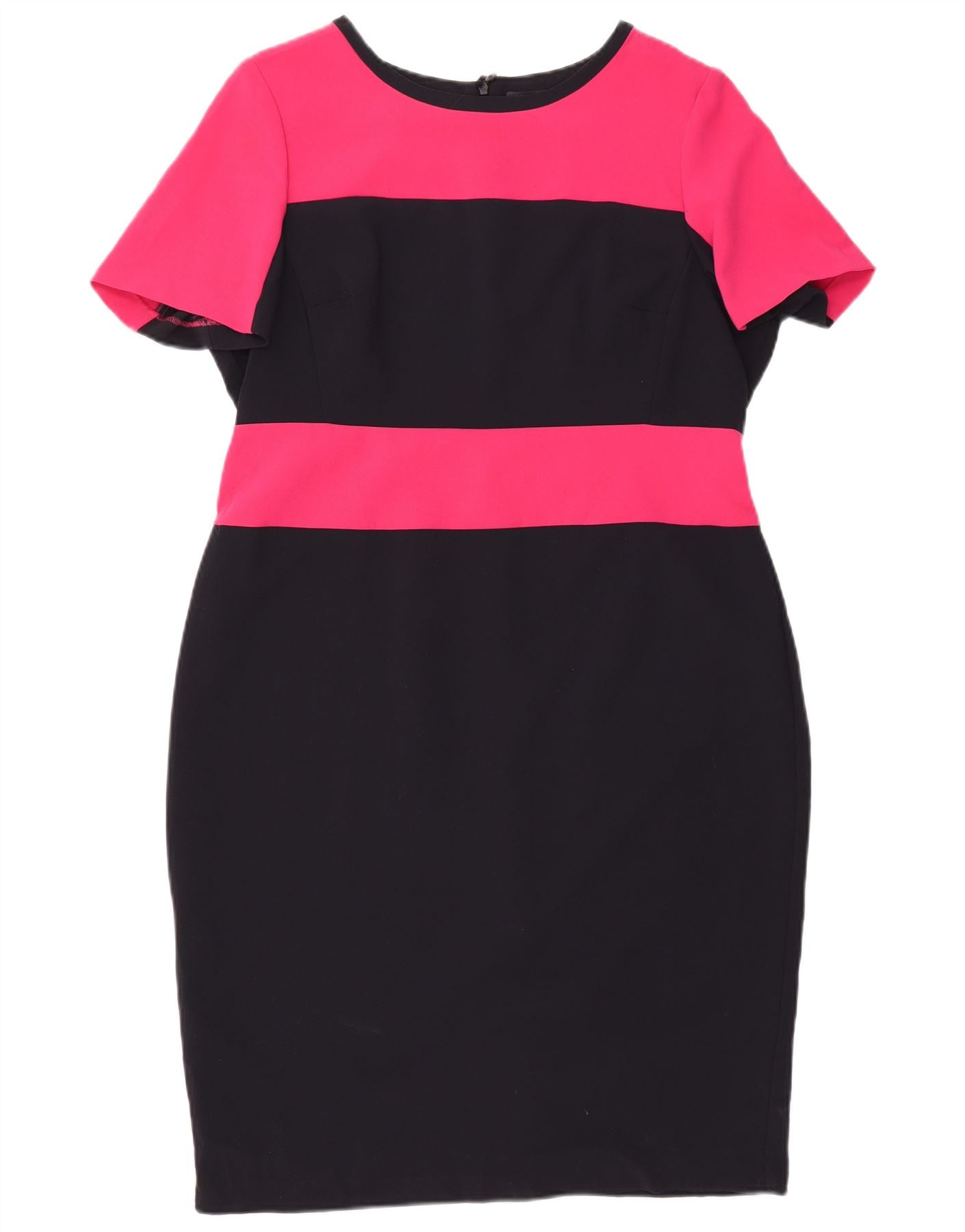 MARKS & SPENCER Damska sukienka płaszczowa UK 18 XL Czarny poliester z blokami kolorów